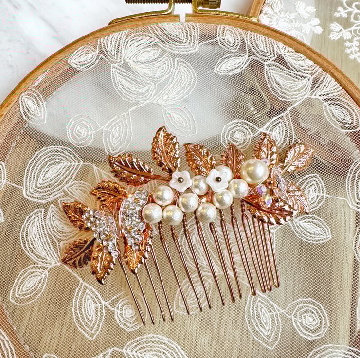 - Created with rose colours metal leaf, Japan cotton pearl (not real pearl), and rhineston.