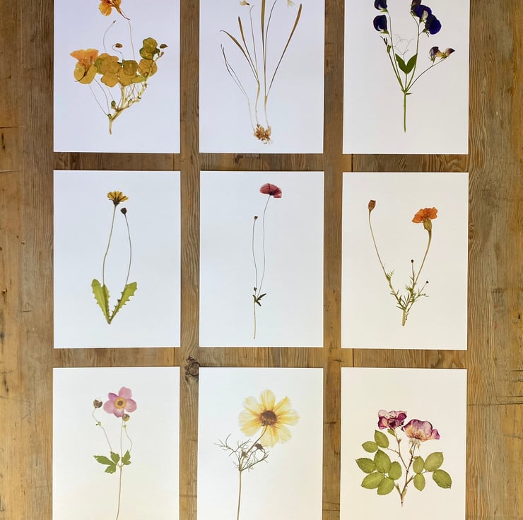 Real pressed flower artworks are time consuming to make and need to be carefully framed in order to preserve their appearance. I wanted to create some affordable, reproduction artworks so that more people can enjoy flowers in their home, hence this range of prints, made from some of my favourite real pressed flower art.