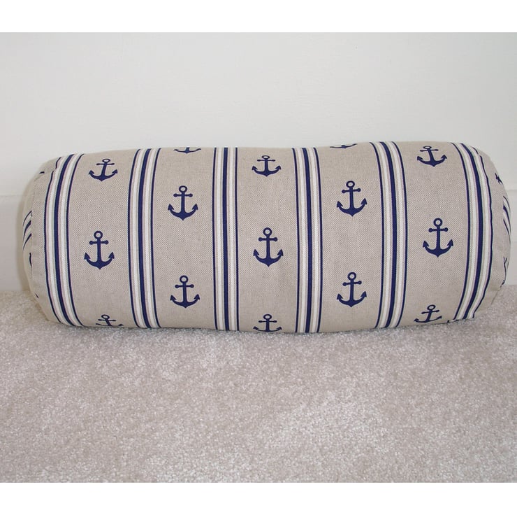 Anchor Bolster Cushion Cover 16"x6" Round Cylinder Neck Roll Pillow Stripes