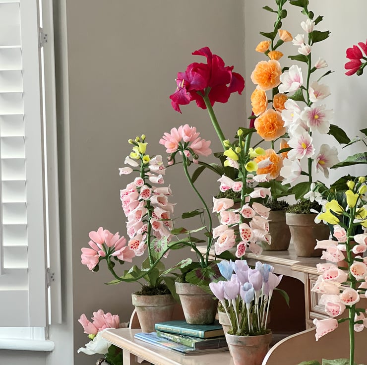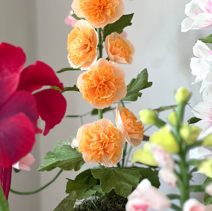 This incredible Double Hollyhock plant is made from specialty Italian crepe paper that has been hand painted and sculpted to produce this fanciful version of the much-loved English garden staple. It could even be argued that this is a better version of its natural cousin -- it can be brought indoors to bring delight all year round, won't die and you won't need to ask your neighbour to water them when you go away.
