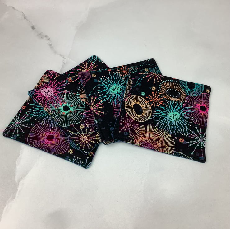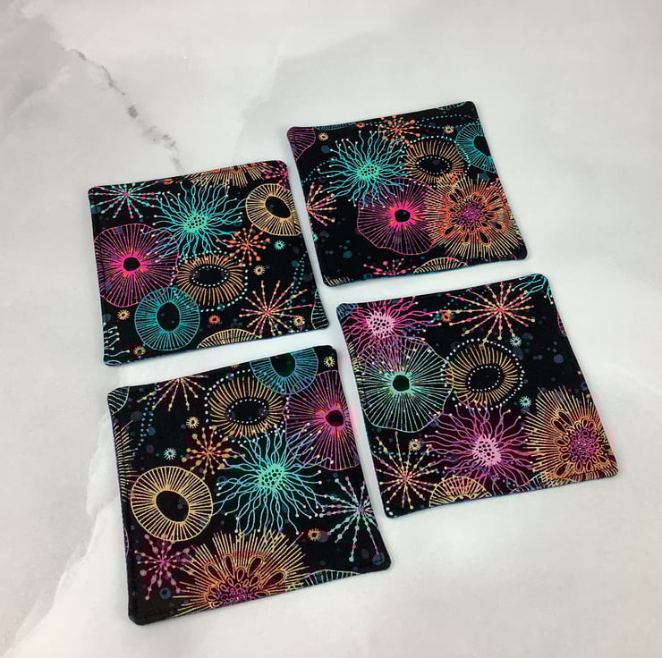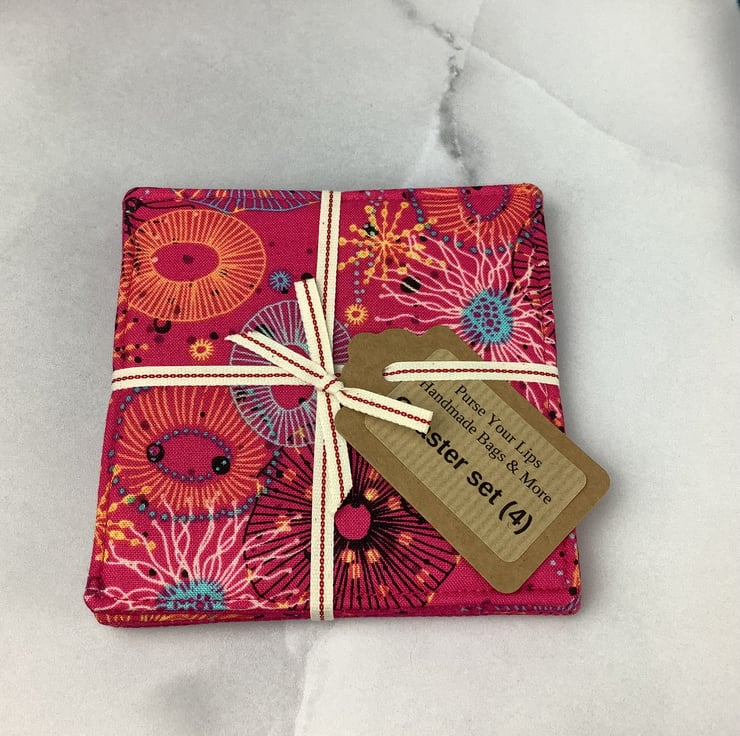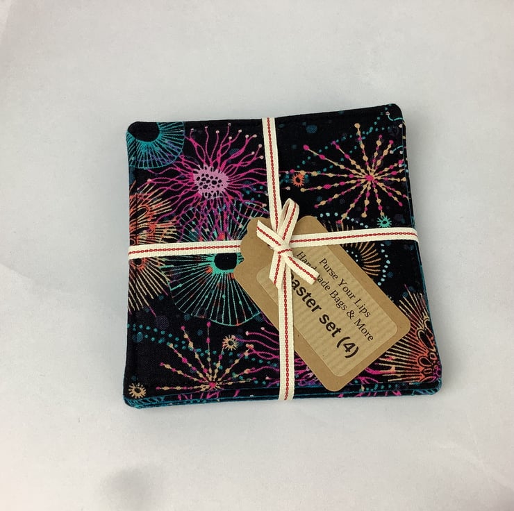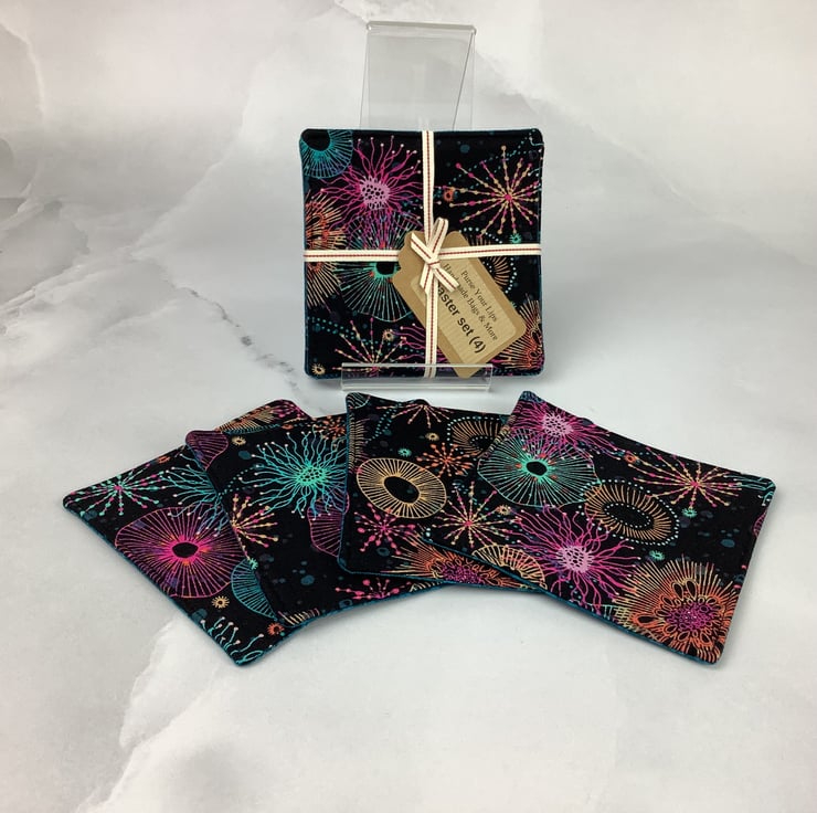 Each of my unique coaster sets is individually made by me in my relaxing and tranquil little West Sussex garden studio so the pattern placement may vary slightly.