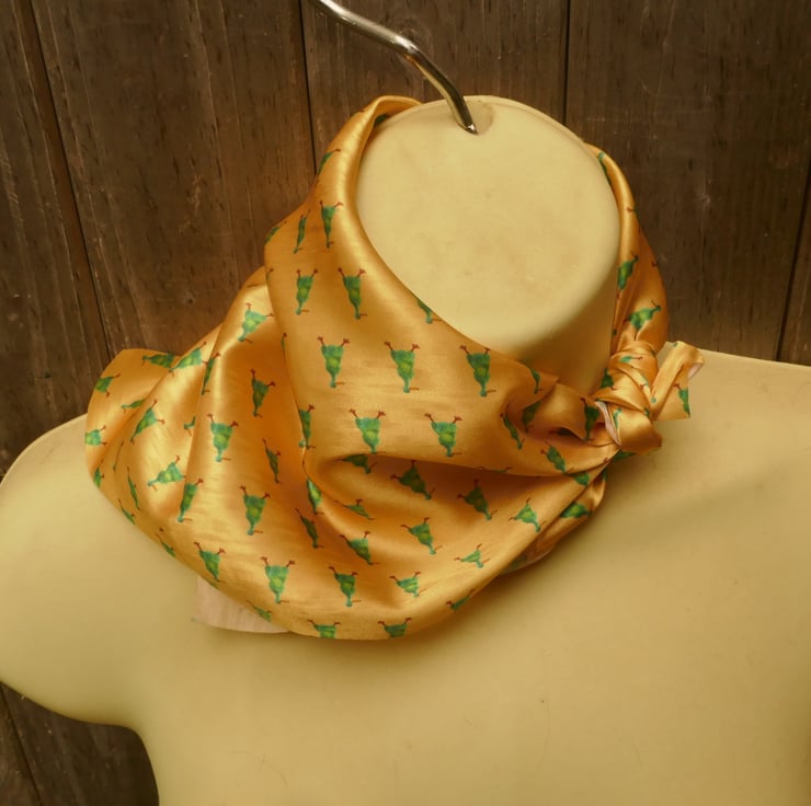 A cute neck or pocket scarf made of satin and measures 40cm x 40cm from my original artwork and especially designed for scarves and scrunchies