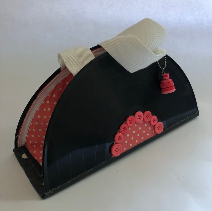 I once saw a picture of a handbag made with records, and so, I tried various ways to create my own as I wanted to make one for my mums birthday. I succeeded, but thought there might be a better way to combine all the elements together, which didn't involve melting the LP at a precise angle! I found a way and loved it so much I made my mum another one and made some to sell too!