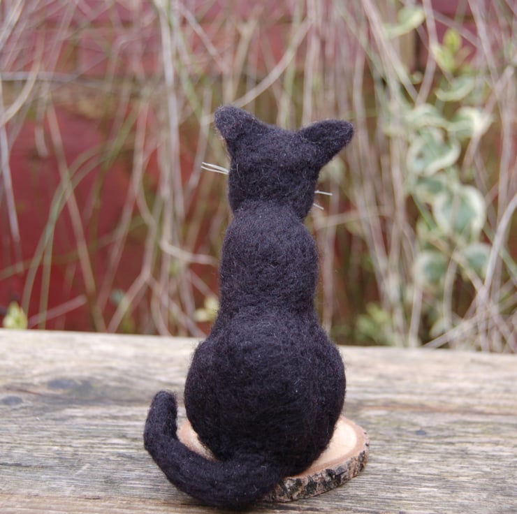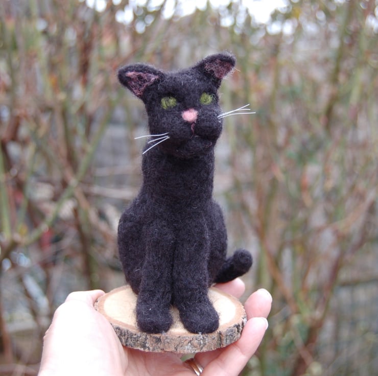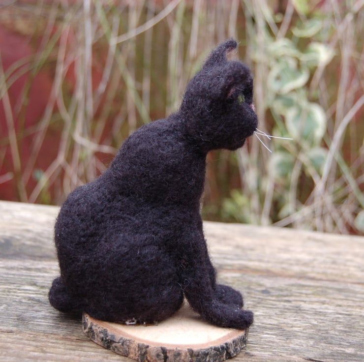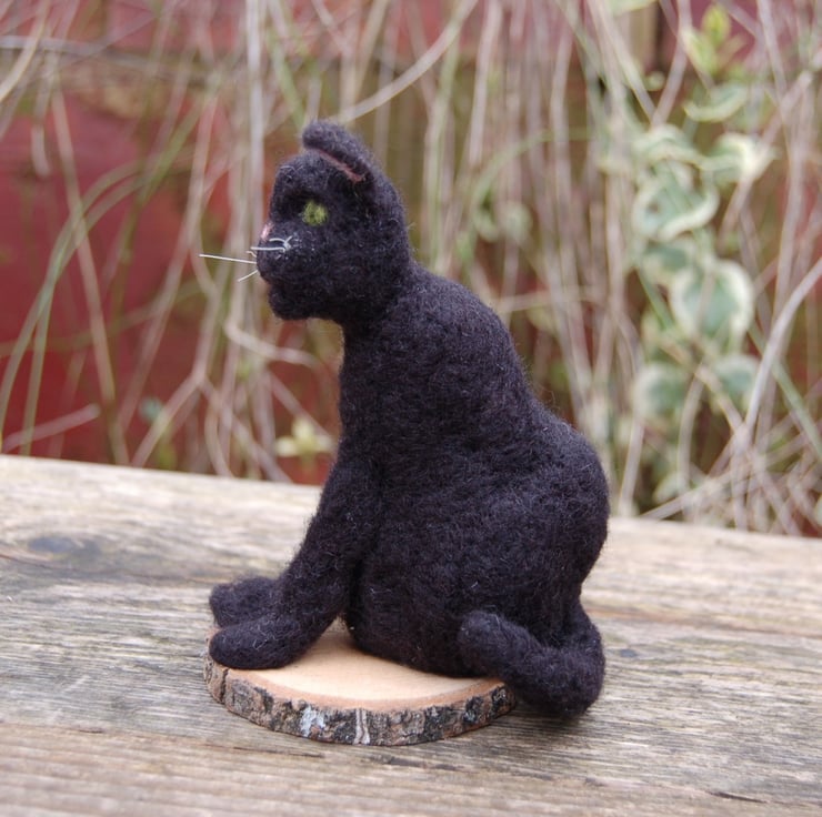 Needle felt black cat, collectable animal sculpture, ornament or decoration