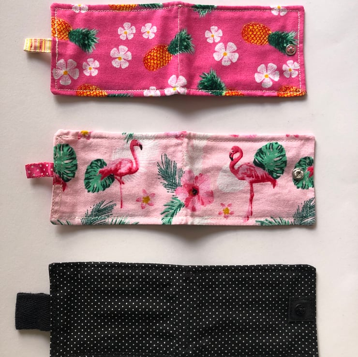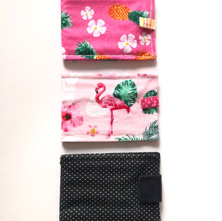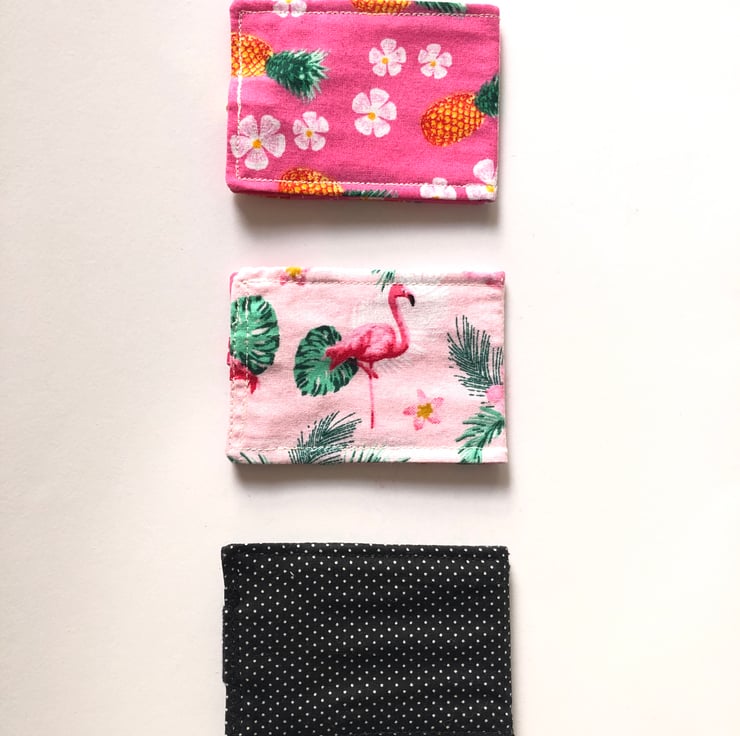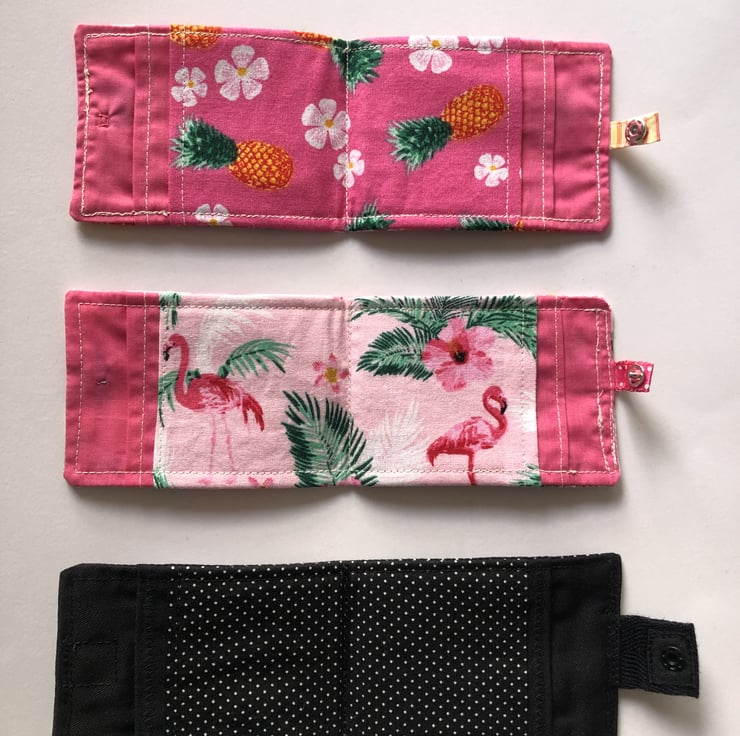 The Fabrics used are new, left over from larger projects. Making these wallets ensured less waste in my creative endeavours.