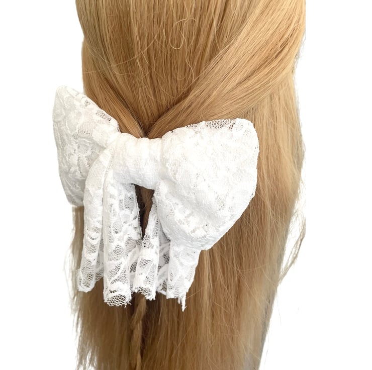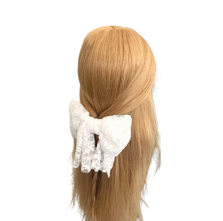 White Lace Bridal Wedding Hair Bow Clip Bachelor Party Bride Oversized Bow Bride