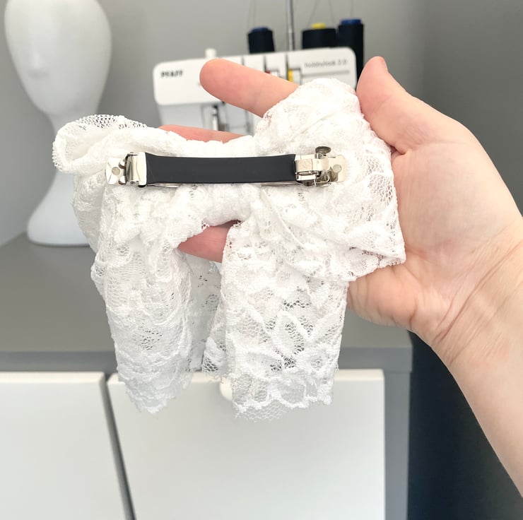 Versatile and easy to wear, our bridal lace hair bow complements a variety of hairstyles, whether you choose an updo, loose waves, or a classic bun. It securely fastens to your hair, allowing you to dance the night away without worrying about readjustments.