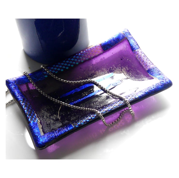 Soap Dish Fused Glass Purple dichroic Trinket 019