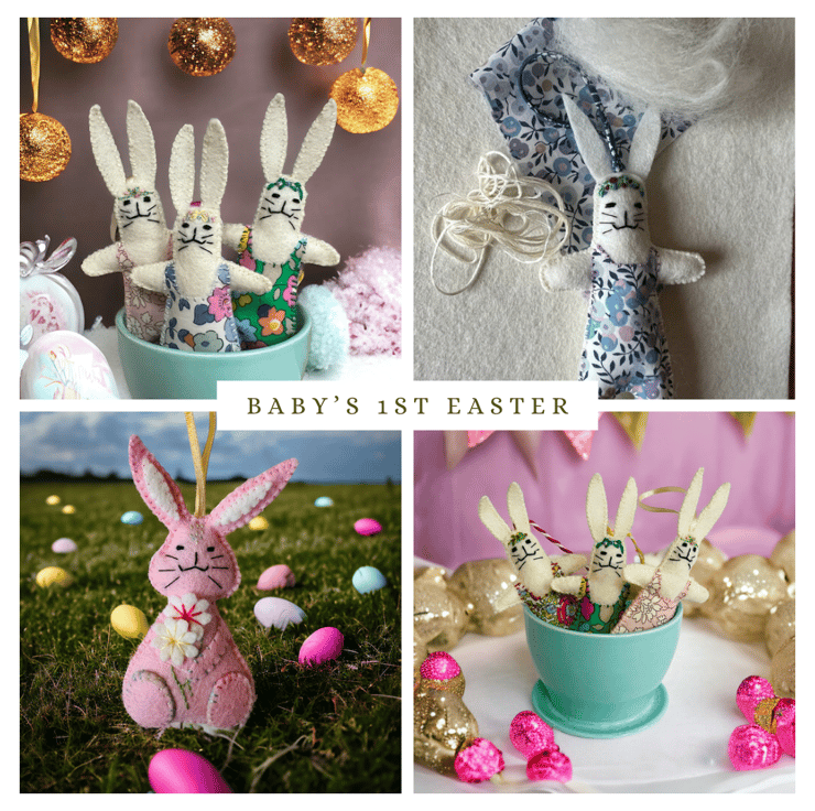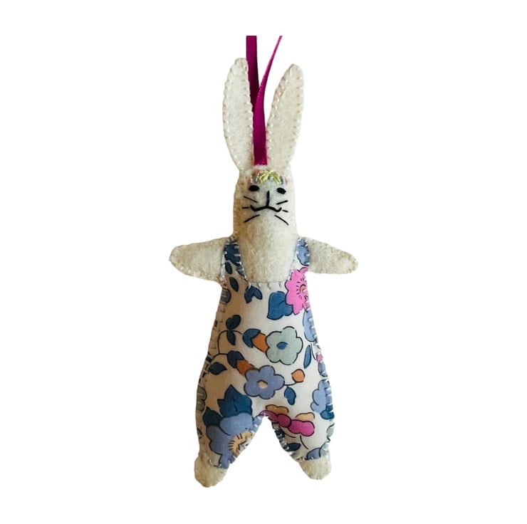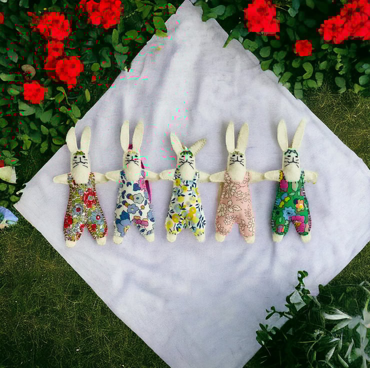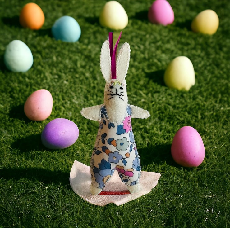 This small felt bunny rabbit would make a lovely addition to your Easter decorations this year. Made from 100% wool felt and Liberty Tana lawn it is approximately 13 cm tall from it's toes to the tip of it's ears. It is stuffed with British wool fleece.