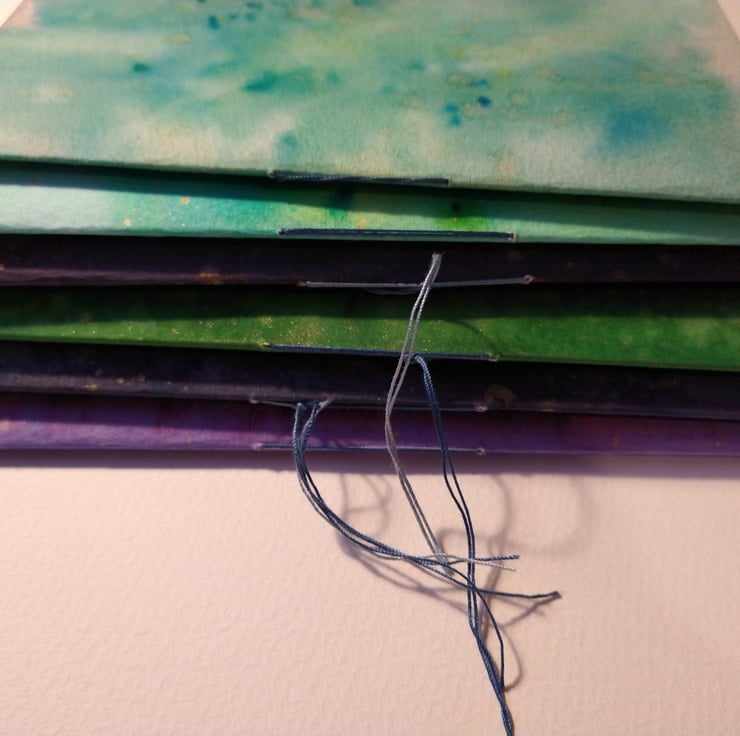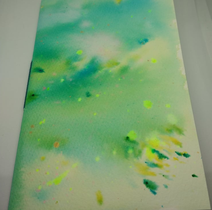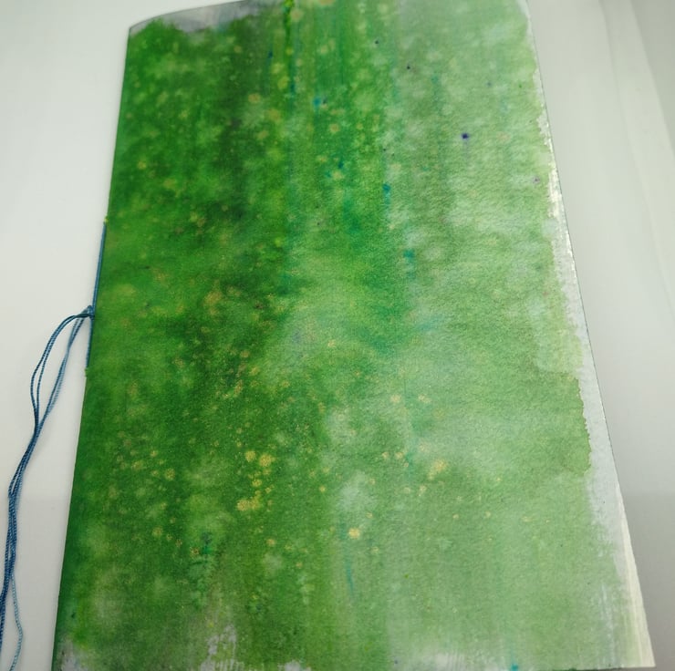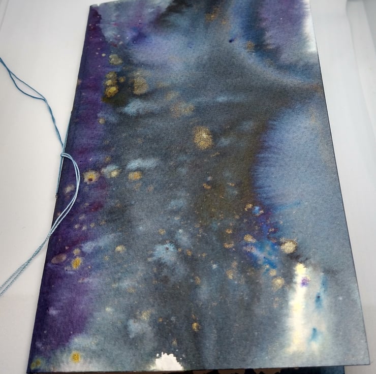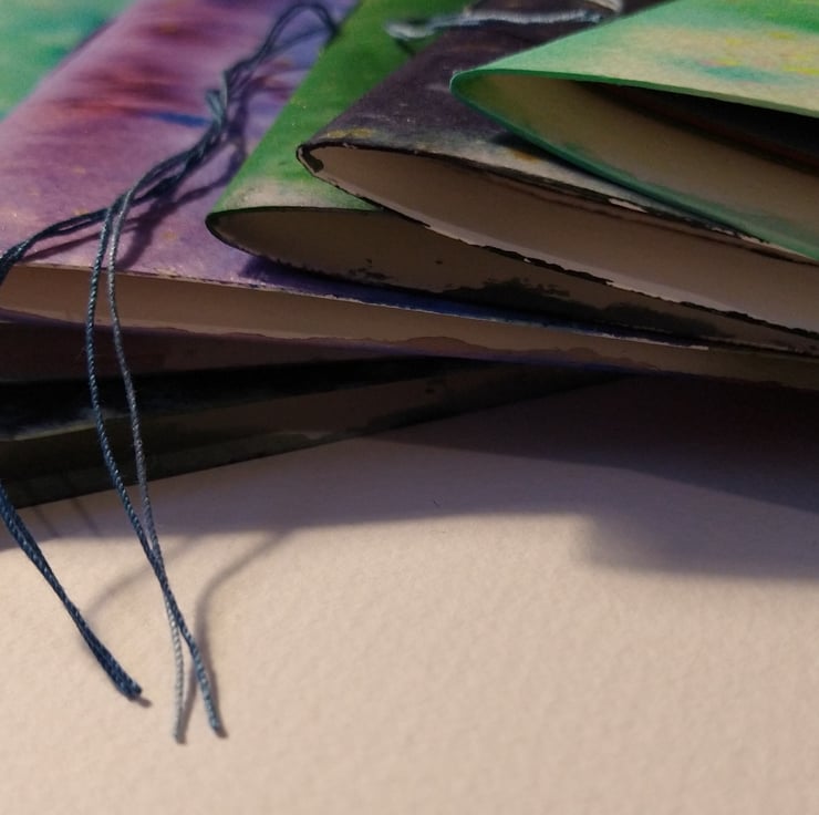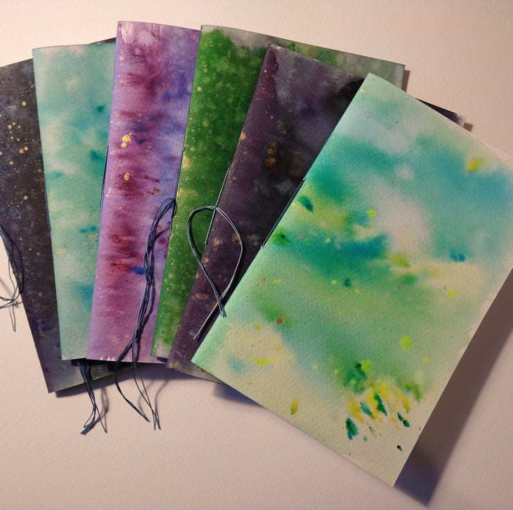 These lovely little sketchbooks are all handmade with a range of different papers and each one has a hand-painted watercolour cover.