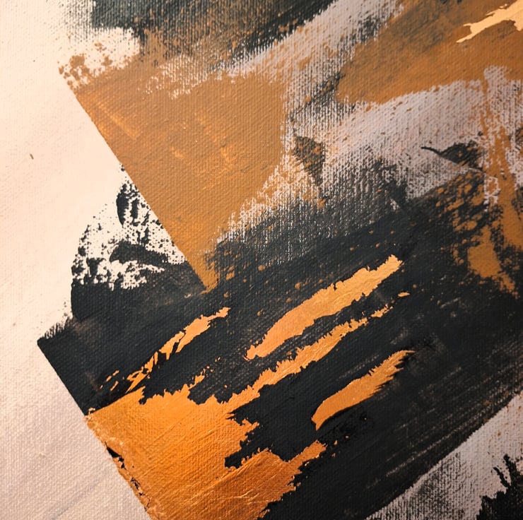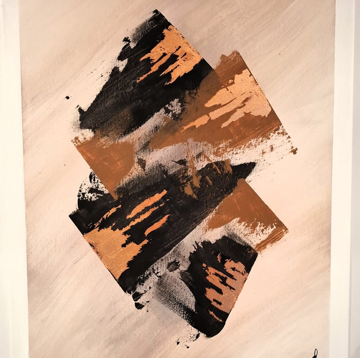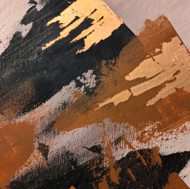 I then chose a dark brown and burnt sienna and swept across the canvas using a palette knife to apply and spread the paint. I added copper leaf to some areas of the painting which catches the light beautifully, and really brings the artwork to life.