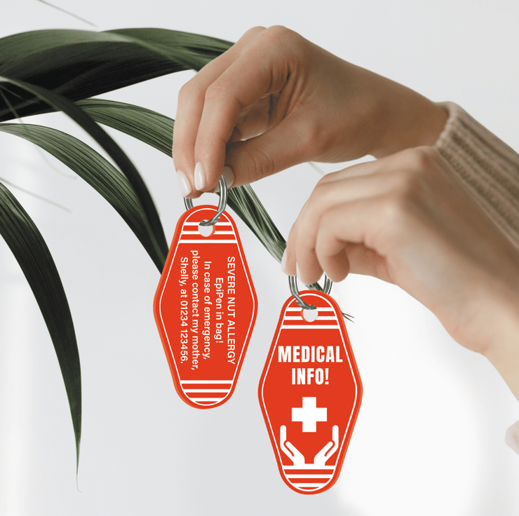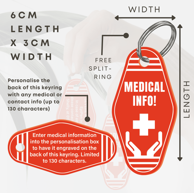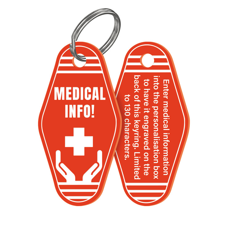 Whether it's attached to your car keys, backpack, or travel bag, this red keyring serves as a vital accessory. Enhance your peace of mind with our personalised Medical Info acrylic keyring! This thoughtfully designed keyring combines style and function, providing crucial information when you need it most.