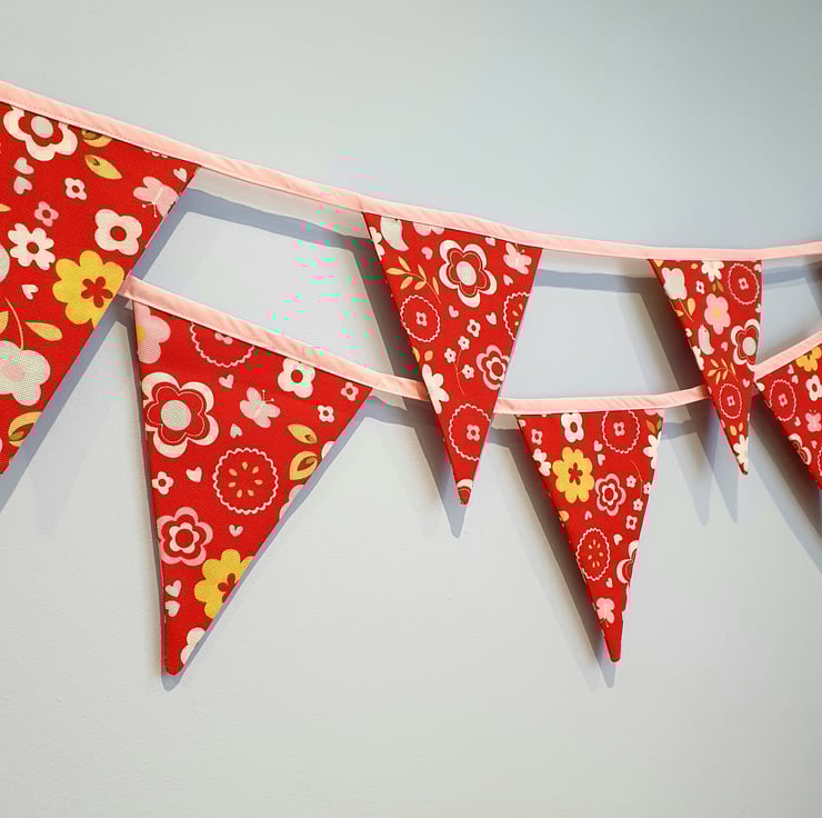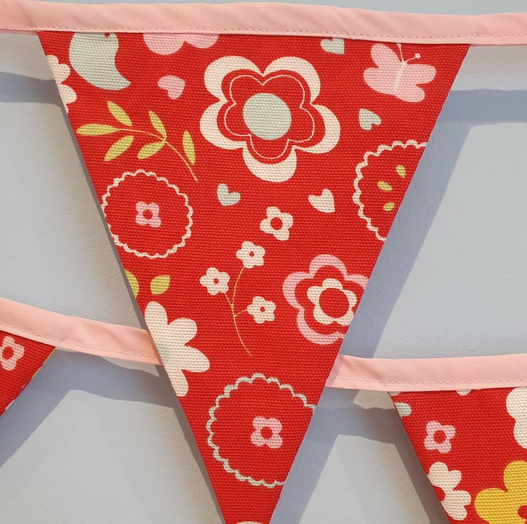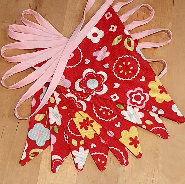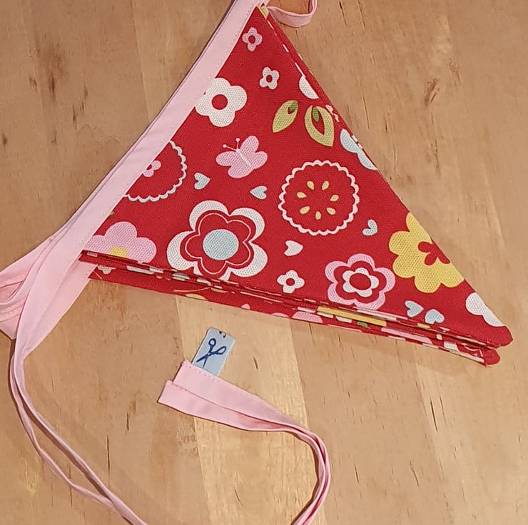 The triangle pennants are made from a cotton linen material and are double sided