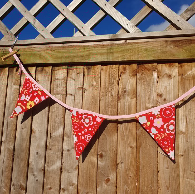 Bunting can be pegged, pinned or tied in place