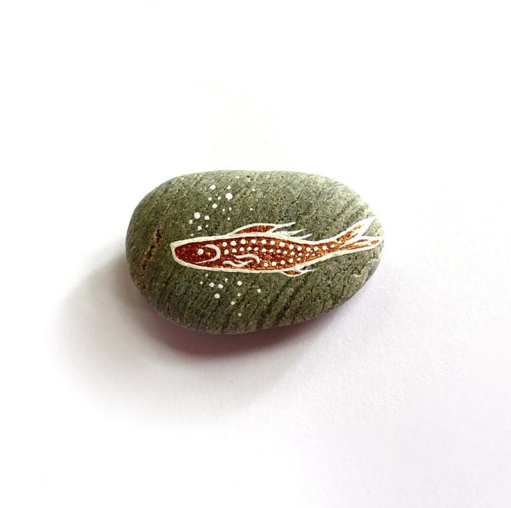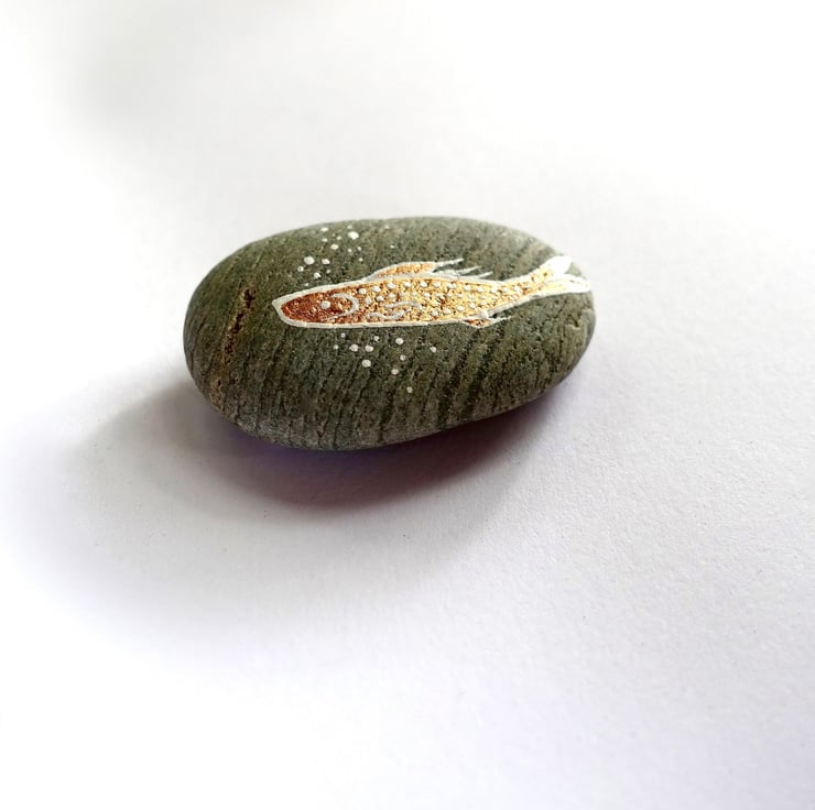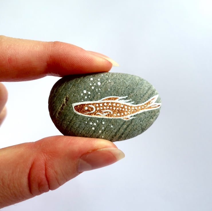 Copper Fish Stone, Handpainted Salmon River Rock Art, Fishing Gift for Him