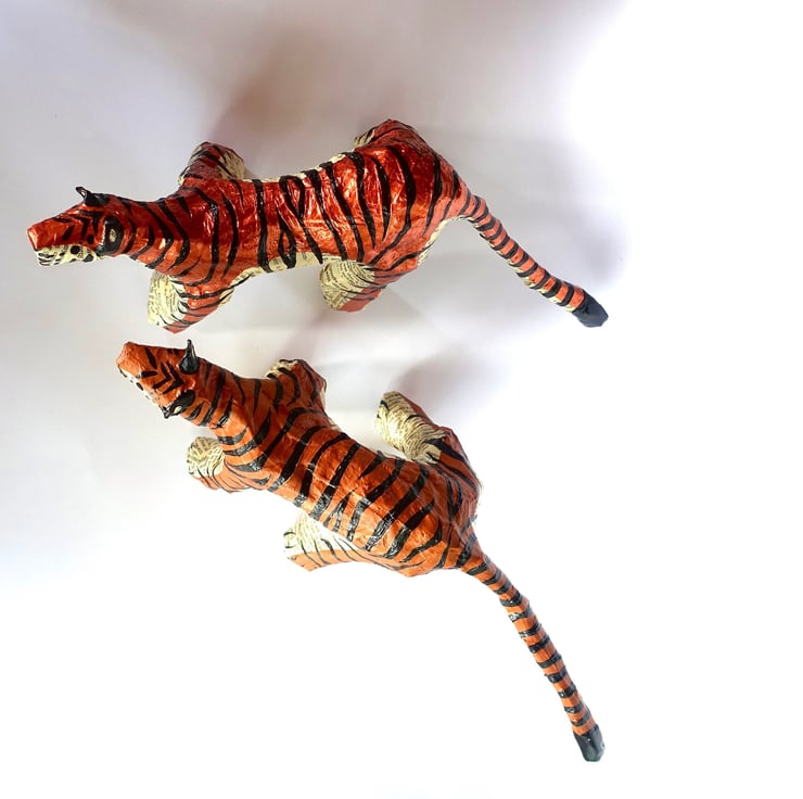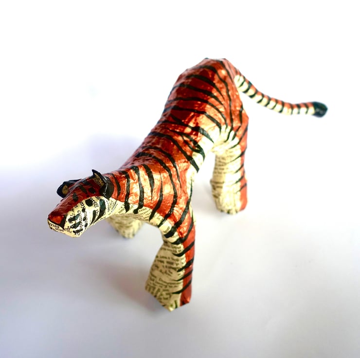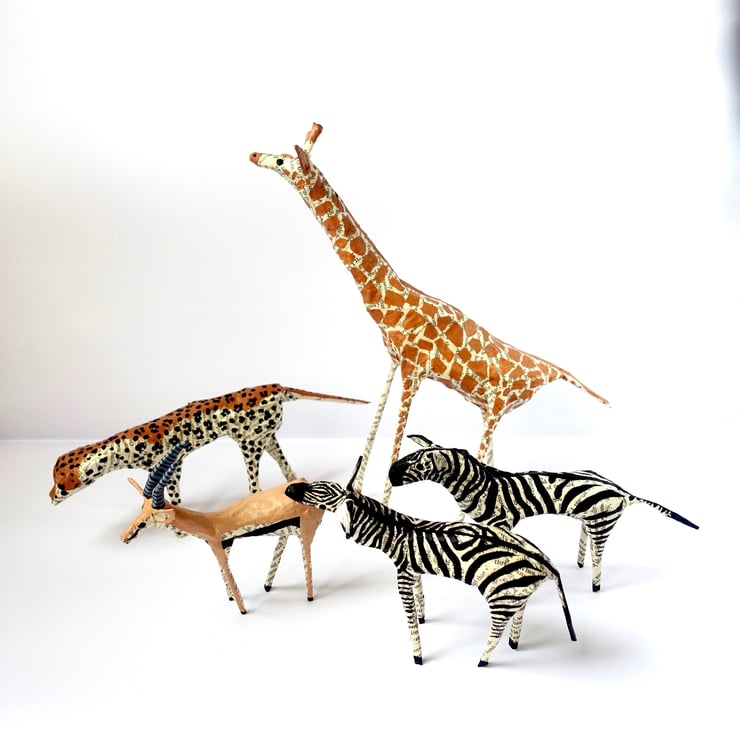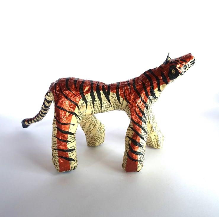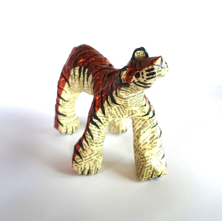These animals are made from recycled vintage book pages, glue and acrylic paint