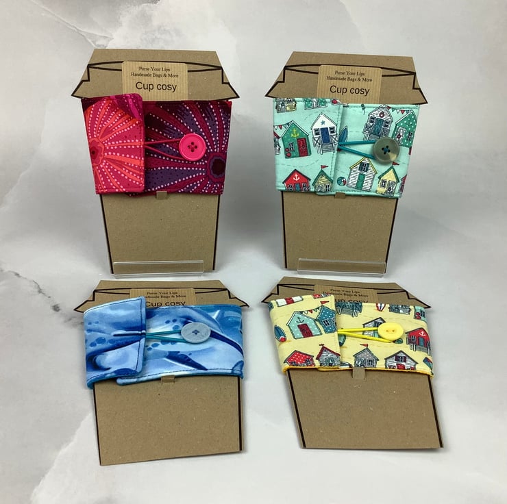 Handmade fabric cosies in a stunning choice of sea themed cotton fabrics and lined in complimentary cottons.