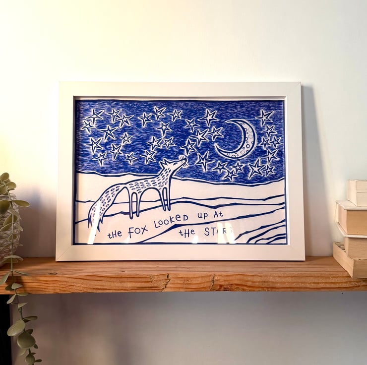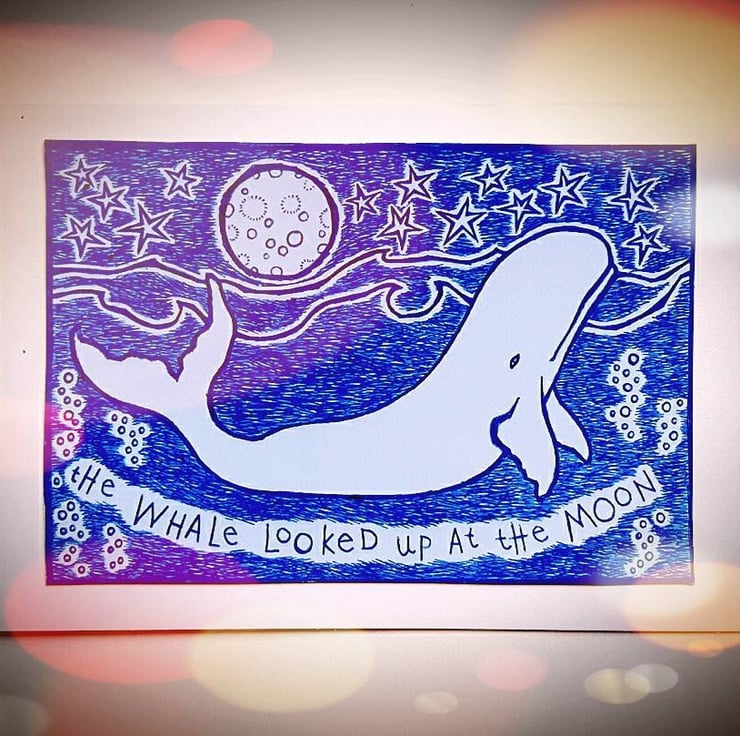 Gicl e print produced from one of my original ink drawings. Lettering reads "The Whale Looked Up At The Moon".