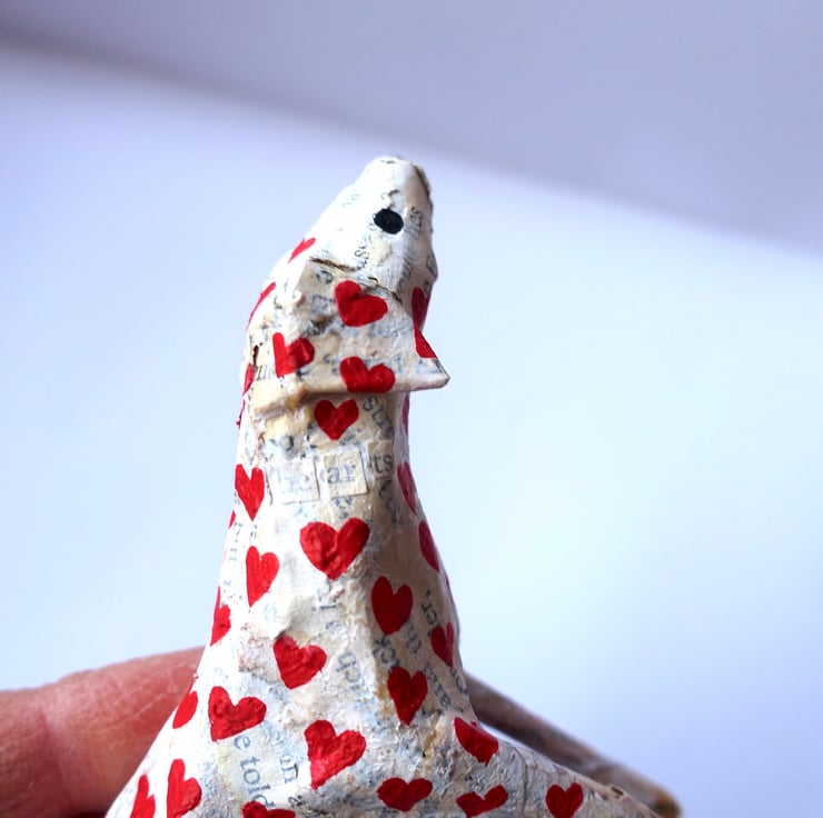 My little animal models are inspired by the stories I tell myself when I walk in the forest near my home and my childhood toys. I created these unusual, quirky sculptures because I wanted to decorate my bedroom with little woodland creatures, crooked wooden houses and miniature Canadian log cabins. I build these from recycled vintage book pages - I do not use any wire structure underneath, each sculpture is built entirely from the paper. I paint each animal carefully by hand. Each sculpture is unique in shape, appearance and character.