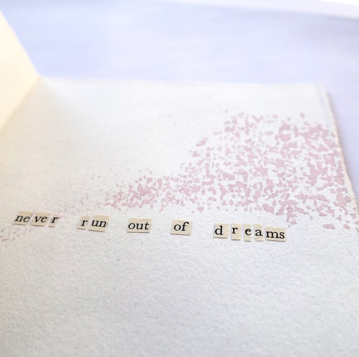 If you would like a personalised message written in or on the card: a handwritten message is free or a message made from lettering cut from vintage book pages can be added on here: https://folksy.com/items/8301490-Custom-Personalised-Message-inside-a-Card-Cut-Lettering