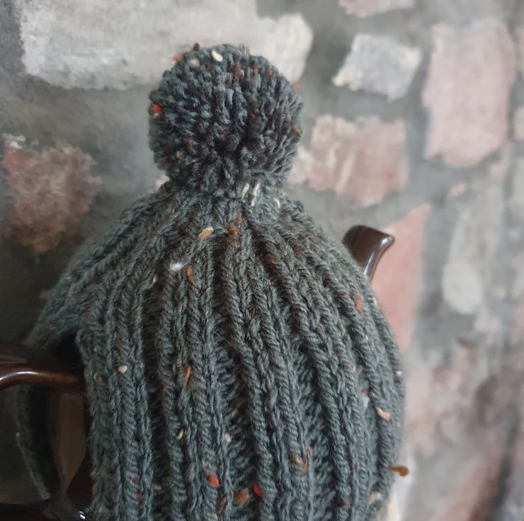 Small Tea Cosy for 2 Cup Tea Pot, Green Tweed, Hand Knitted