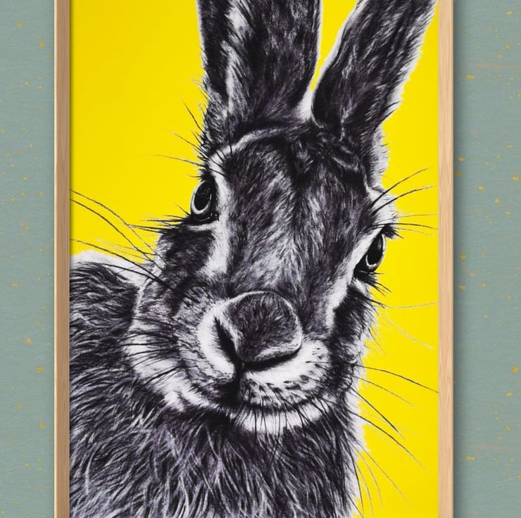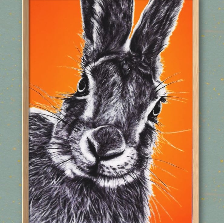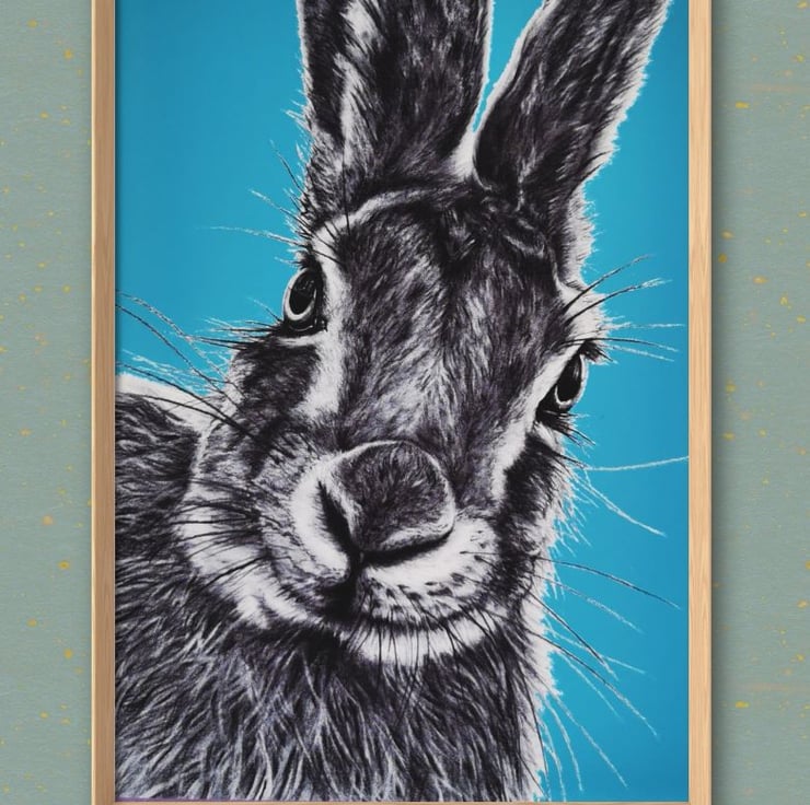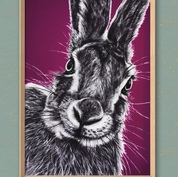 A cheery hare with a vibrant background which can be custom coloured. A5 art print ONLY