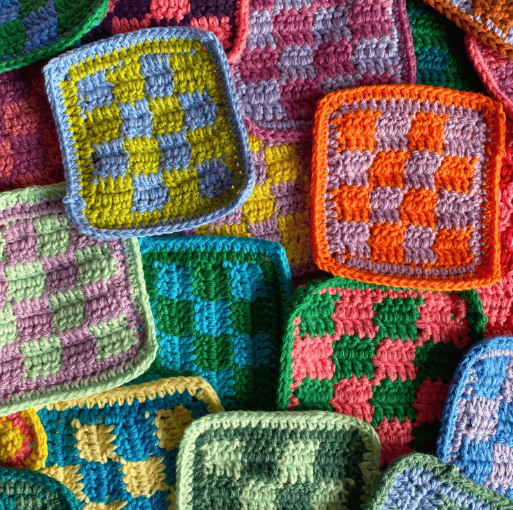 Physical kit to make your own handmade crochet checkered coasters! Made with 100% cotton, this kit makes the perfect item to brighten up/cuten any room.
