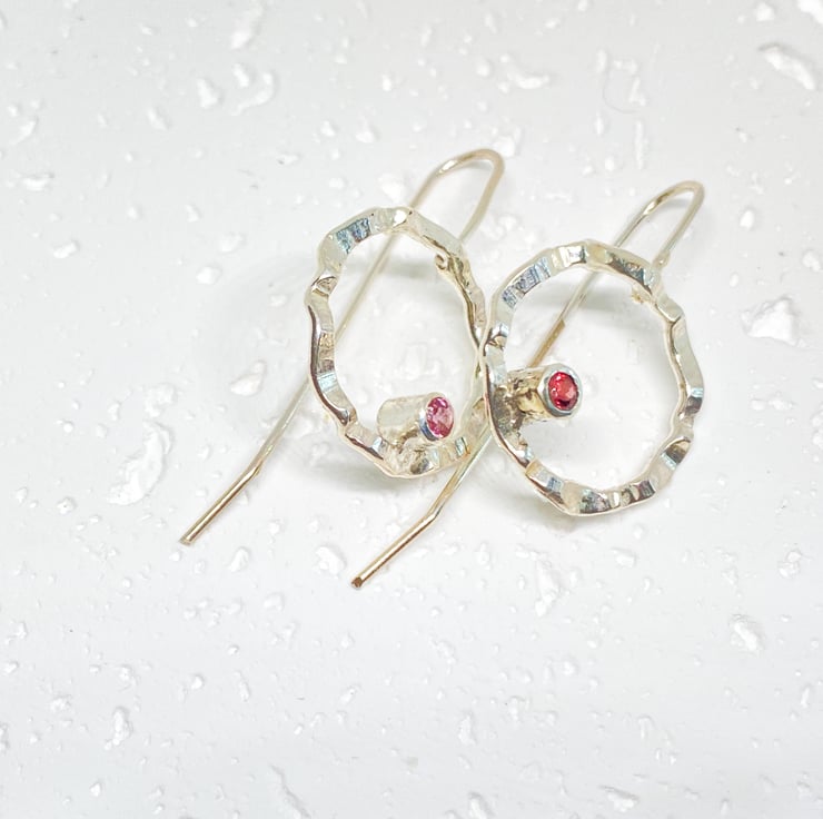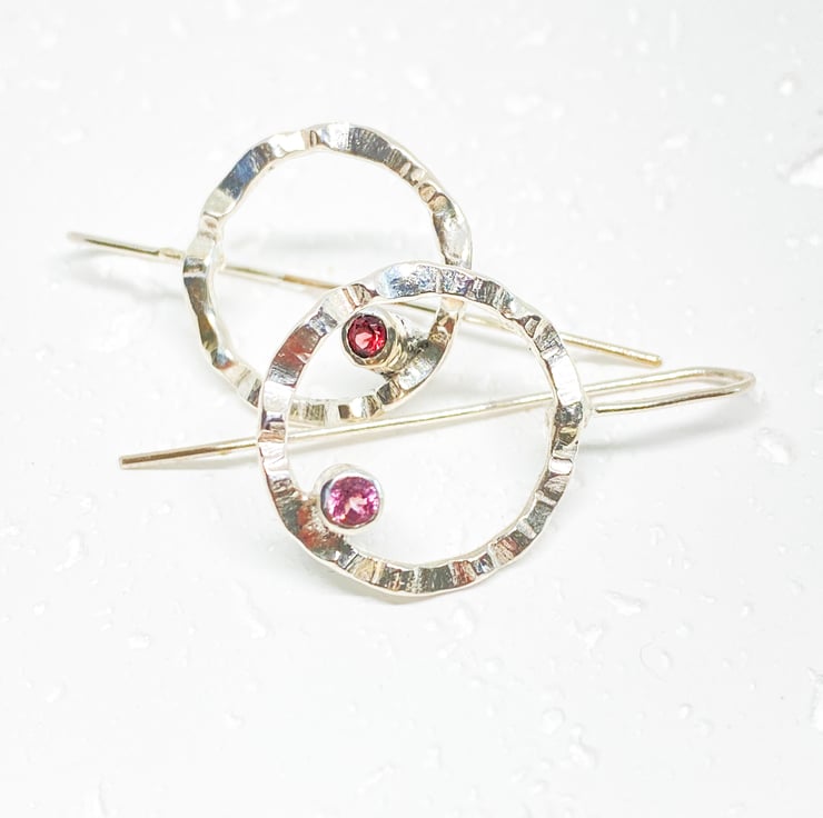 Sterling silver earring p, handmade using two different types of garnet. One rd and one pink, both 3mm. Made using recycled silver.