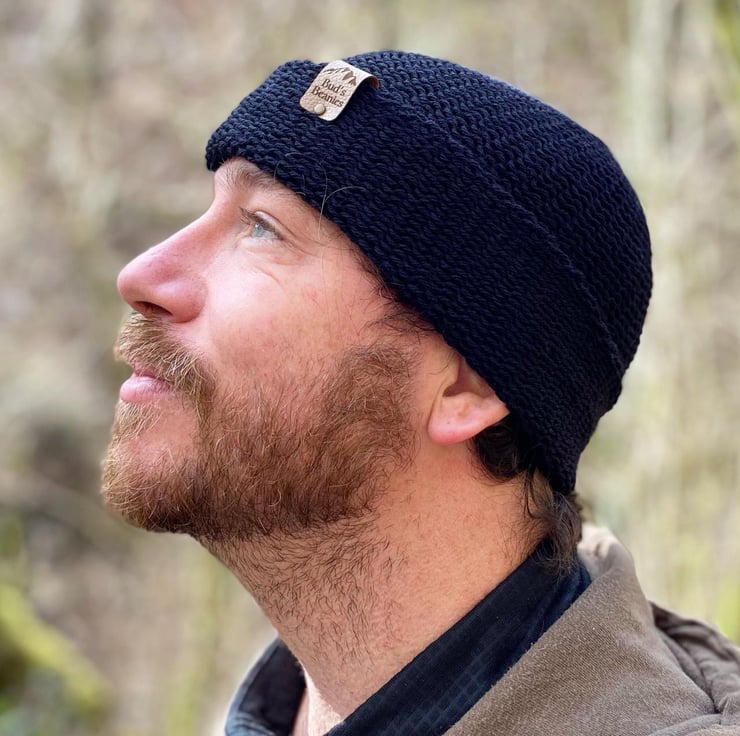 Fisherman's style beanie hat in colour 'Liquorice' (Black). Knitted in a double layer for optimal cosiness with 100% wool and a faux-leather tag.