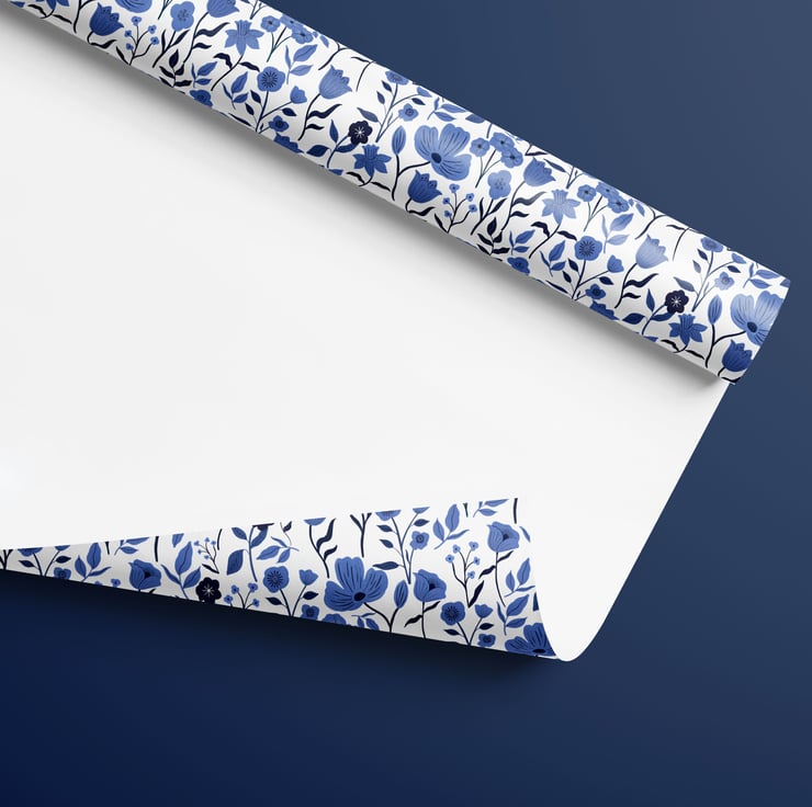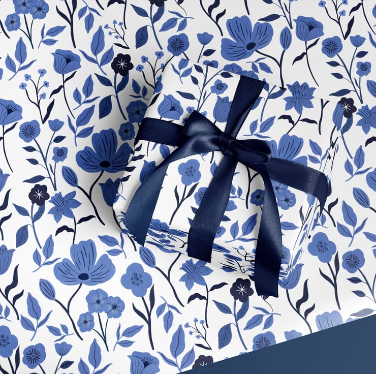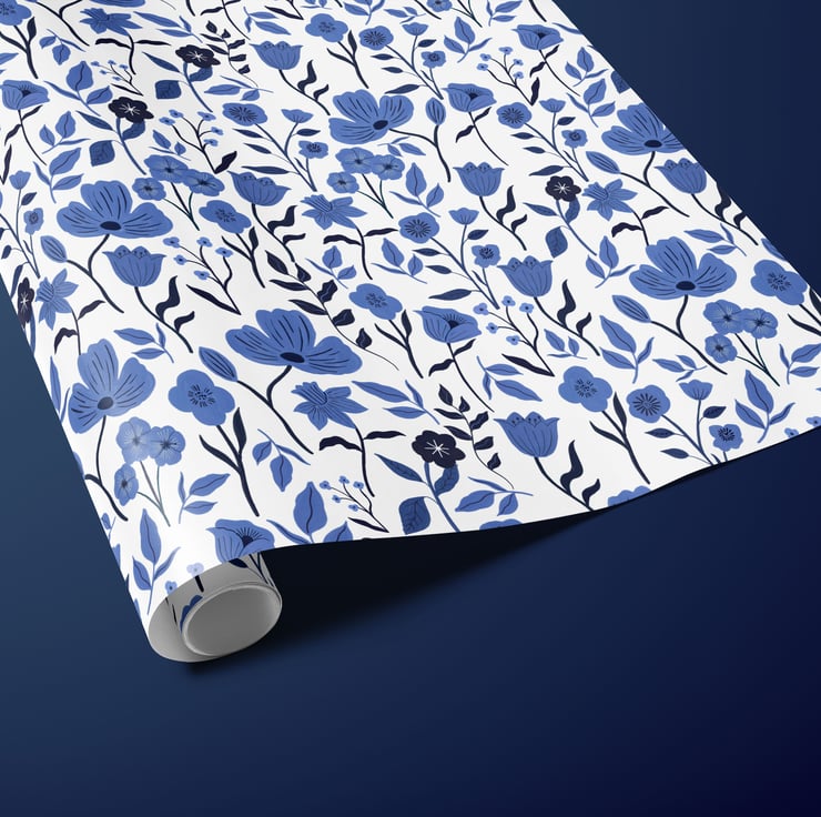 Why not wrap that perfect special gift for someone in this beautiful Blue and White Flowers Wrapping Paper. This floral pattern is unique and illustrated by me, using inspiration from beautiful spring flowers in the local park.