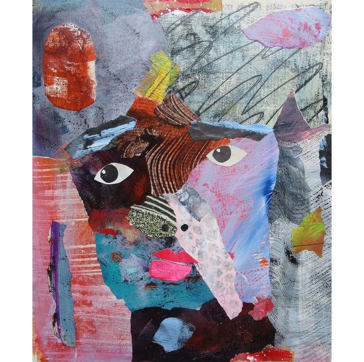 Beautiful abstract face / portrait painting in collage on board made by using my own painted papers throughout. The artwork measures 10 x 12 inches - ideal to pop straight into any standard sized 10x12 inch frame or matt. It will be signed on the front by Beatrice before shipping and it comes to you unframed with a soft sheen surface finish. (Framed photos are for illustration purposes only.)