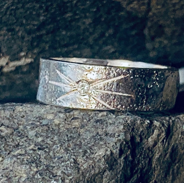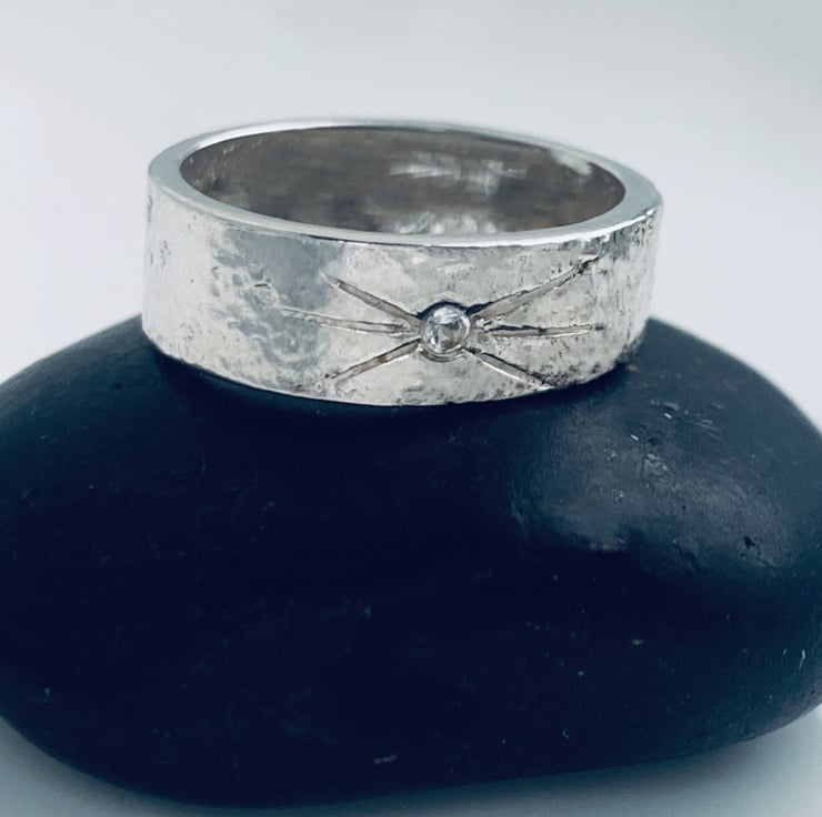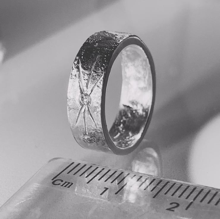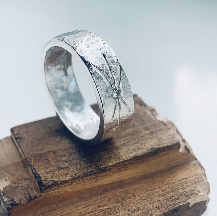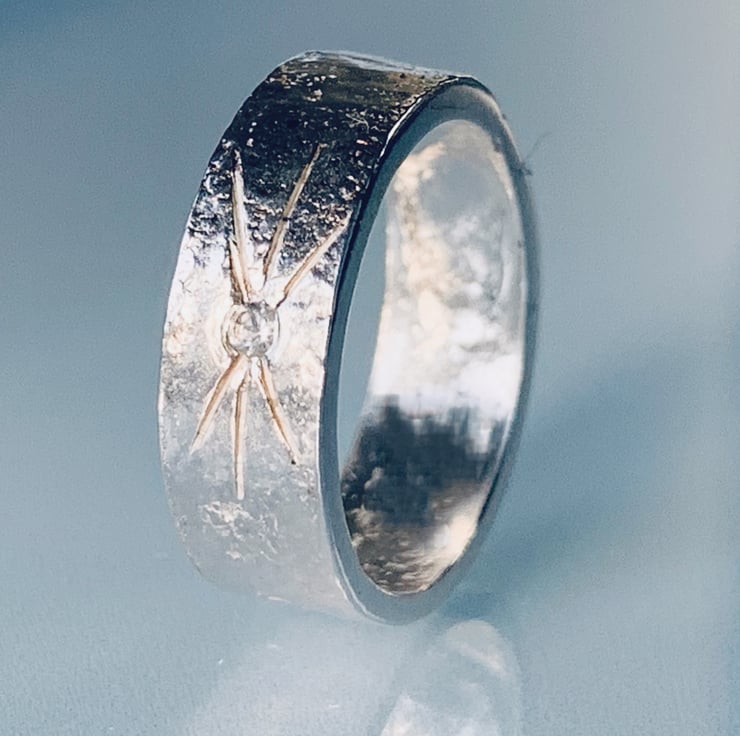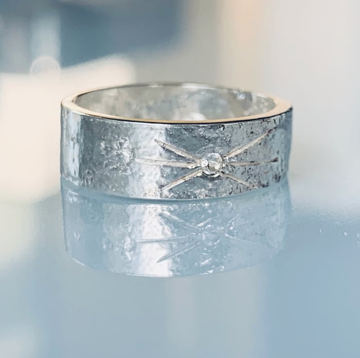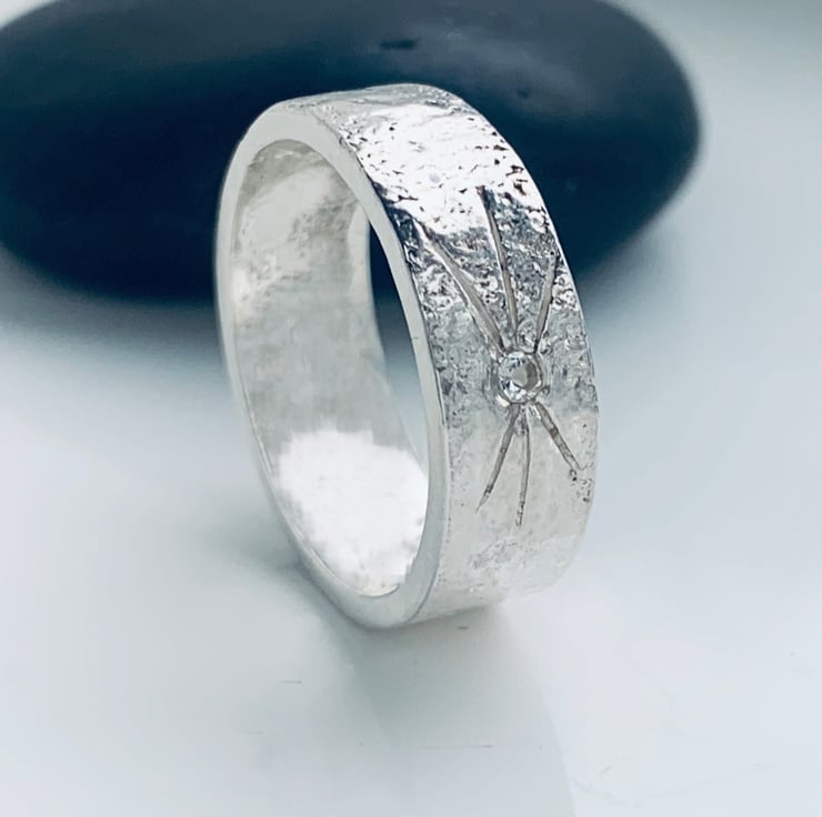 Sterling silver band with a heat flame texture (reticulated) heating the metal until it starts to bubble and breakdown, then immediately take away the flame, The applied texture is unique, tactile and has organic contemporary look.