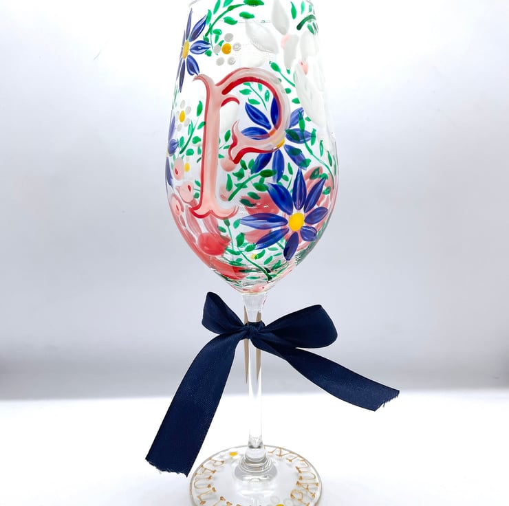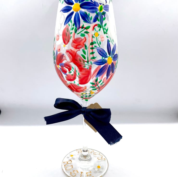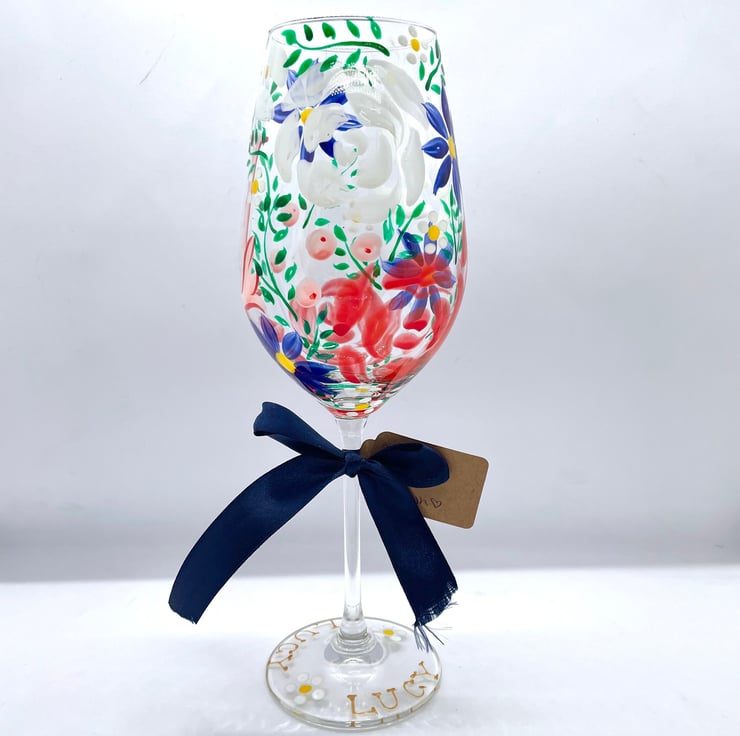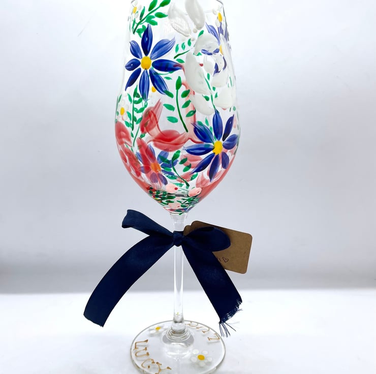 Hand Painted Wine Glass Personalised Wine Glass Flower Design