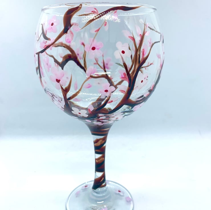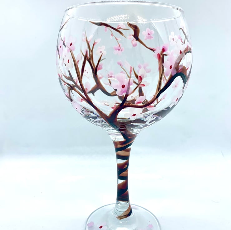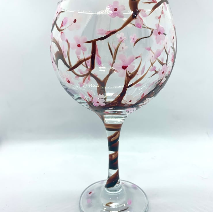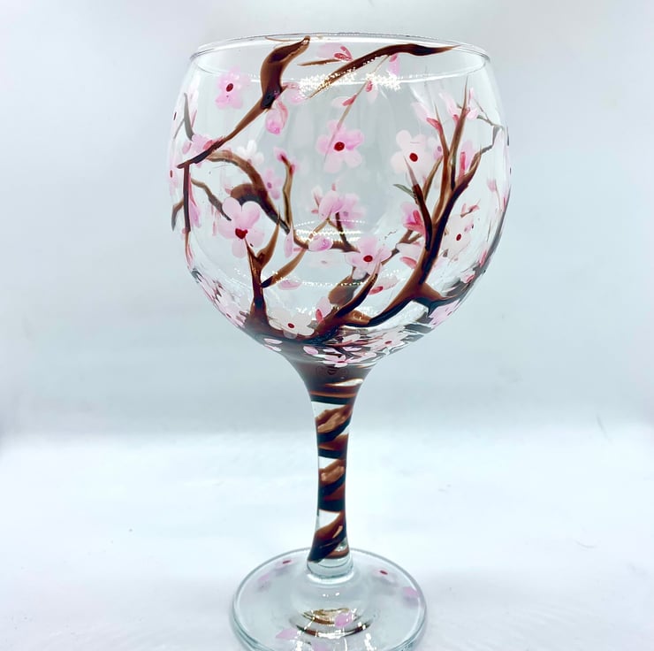 Hand Painted Gin Glass Cherry Blossom Gifts Optional Personalisation