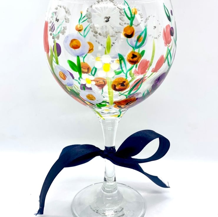 Wildflowers Gin Glass Hand Painted Gin Glass Bright Colourful Gin Glass