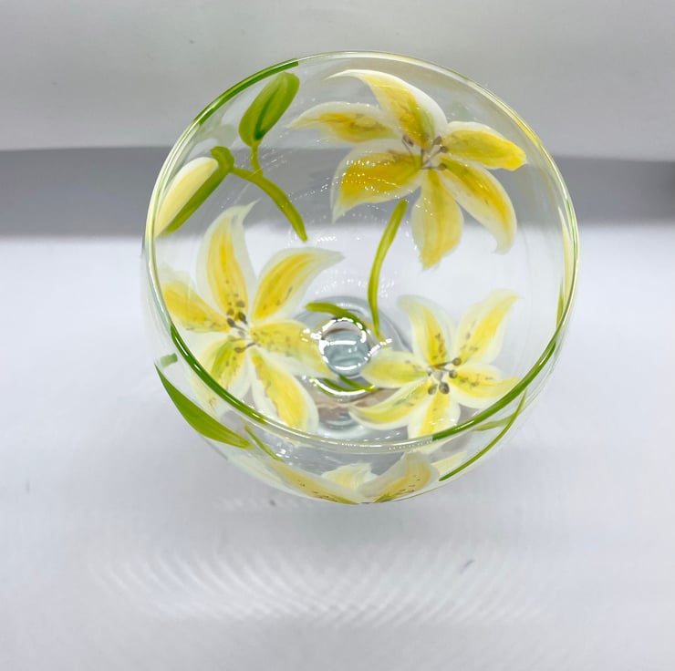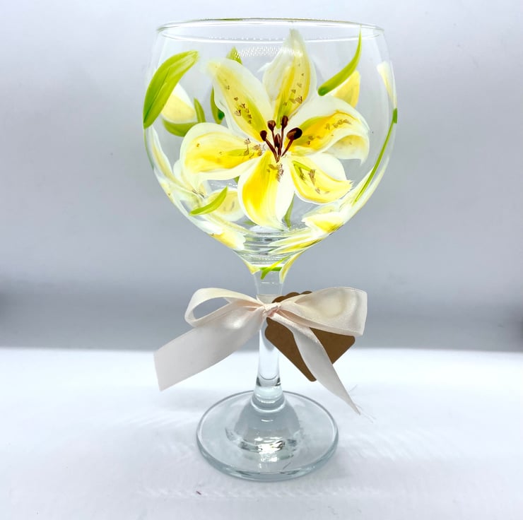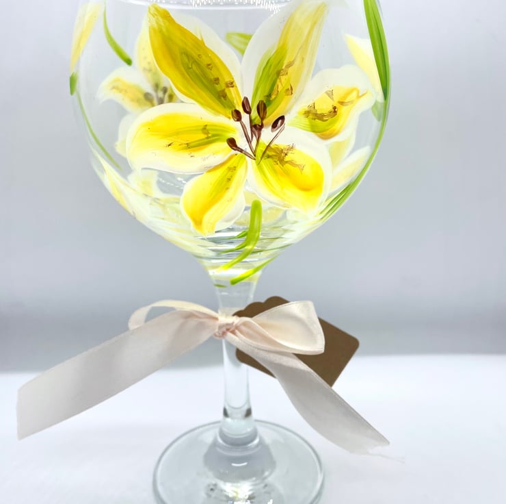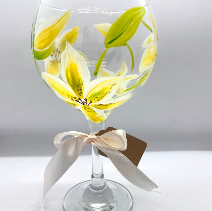 Hand Painted Gin Glass with Stargazer Lily Yellow Gin Glass Birthday Gift with Optional Personalisation.
