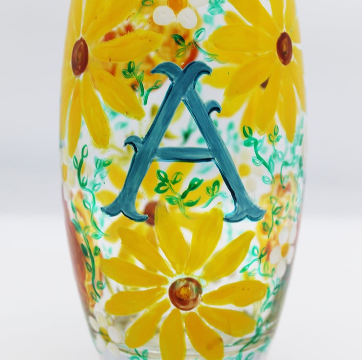 Hand Painted Sunflower and Marigold Highball Glass Tumbler Personalised with Alphabet Letter