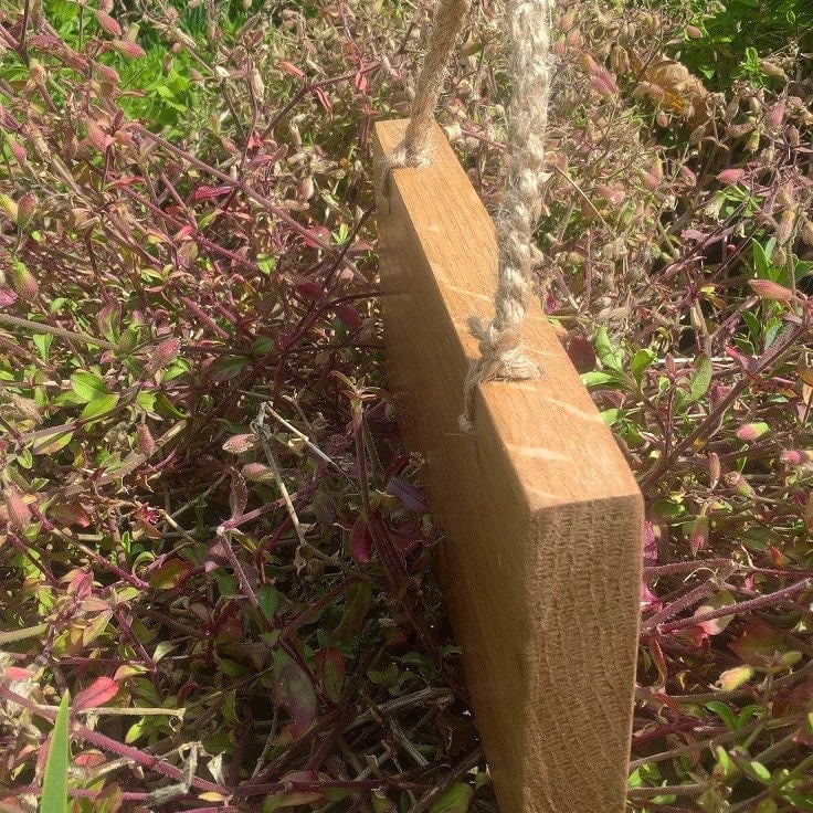 Hand plaited jute rope that is fixed through the top edge of the sign so no rope showing on front of sign