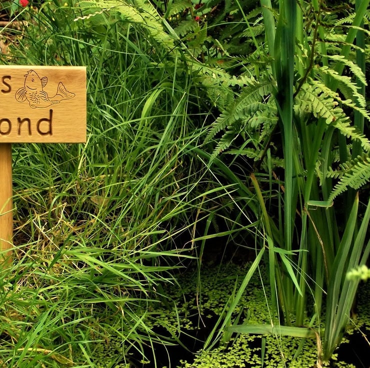 Personalised Oak Pond Sign with Frog and Fish images