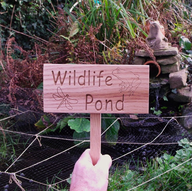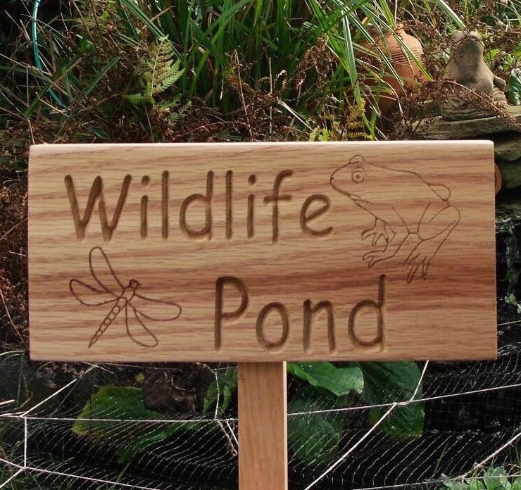 If you prefer you can still have the frog and dragonfly images but personalise with the wording of your choice (If no personalisation given, the sign will be carved 'Wildlife Pond'