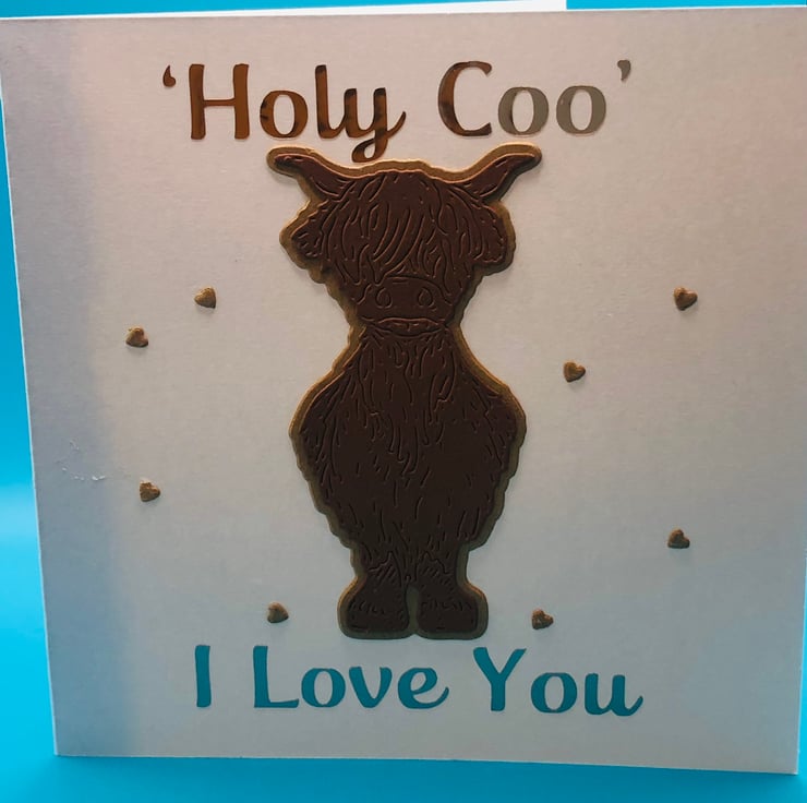 This is a lovely simple but straight to the point ‘I love you ‘ card with a highland cow. The highland cow is so popular at the moment . It’s an ideal card for someone who doesn’t like a lot of fuss. Someone who loves highland cows will love this. It’s blank inside but I can add a verse if you’d like one. It can be for birthdays anniversaries weddings , I can change the wording to happy birthday or happy anniversary etc. i can add any sentiments or verse to it . It measures 6x6ins