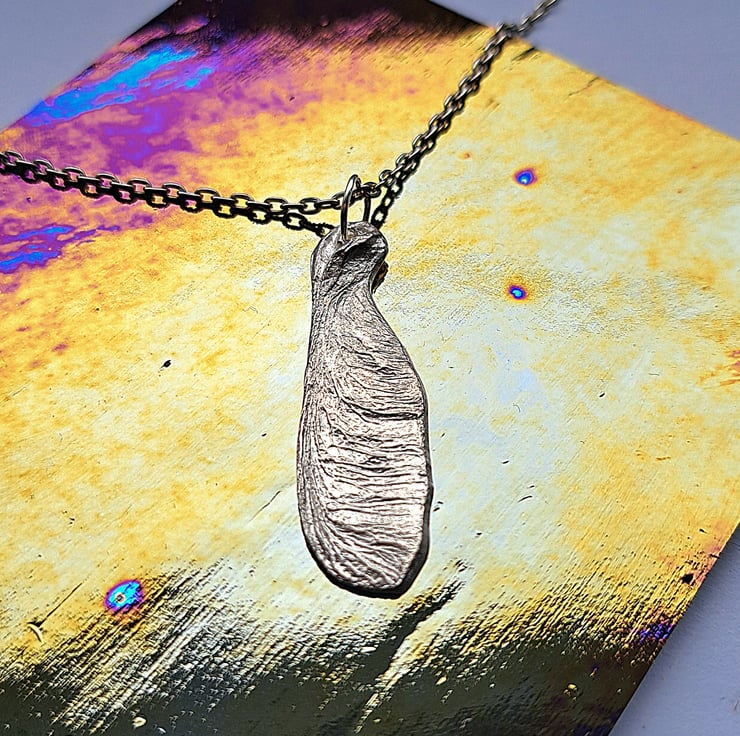 Silver clay Silver Sycamore Seed Pendant handmade by me. This is the larger size at 4.5cm. If you have any questions feel free to pop me a message.