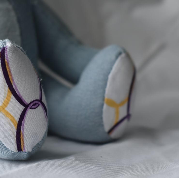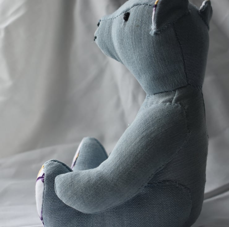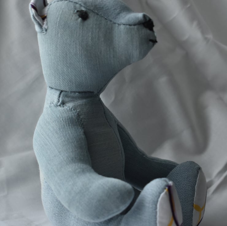 This little fellow is made of old pair of pale blue jeans I couldn't bear (pun fully intended) to part with.
