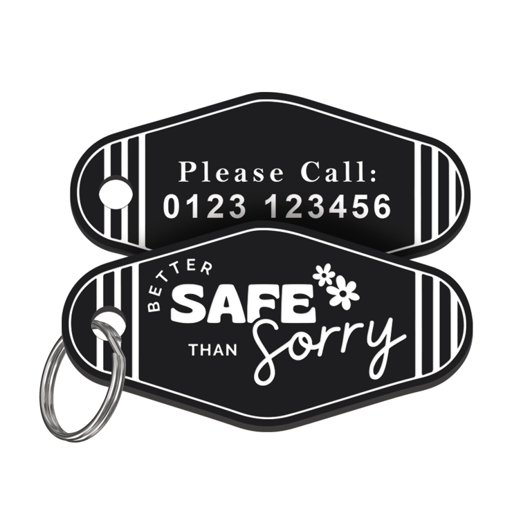 Put safety first with our "Better Safe Than Sorry" acrylic keychain! It features a safety mantra on one side and space to add emergency contact information on the other. Carry your safety net everywhere you go, prepared for any surprises. This keychain is more than just a stylish accessory; it's a thoughtful keepsake, ideal for students and young adults. Keep your loved ones safe and connected with this personalised keychain.