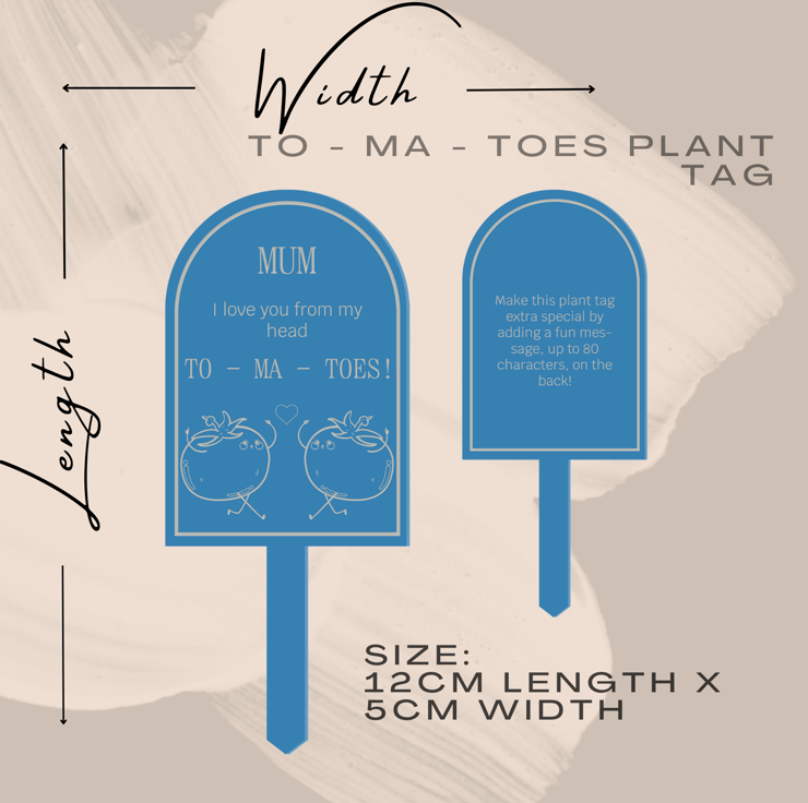 Each tag features two tomatoes with big smiles and arms wide open, ready to spread some botanical love. Paired with the delightful quote, "I love you from my head to - ma - toes," these tags are sure to bring a chuckle to anyone who sees them.
