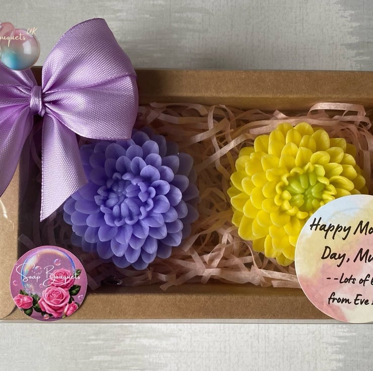 Treat yourself or your loved ones to the indulgence of our Handcrafted Scented Dahlia Soap Gift Box. Discover the true essence of floral luxury with each use.