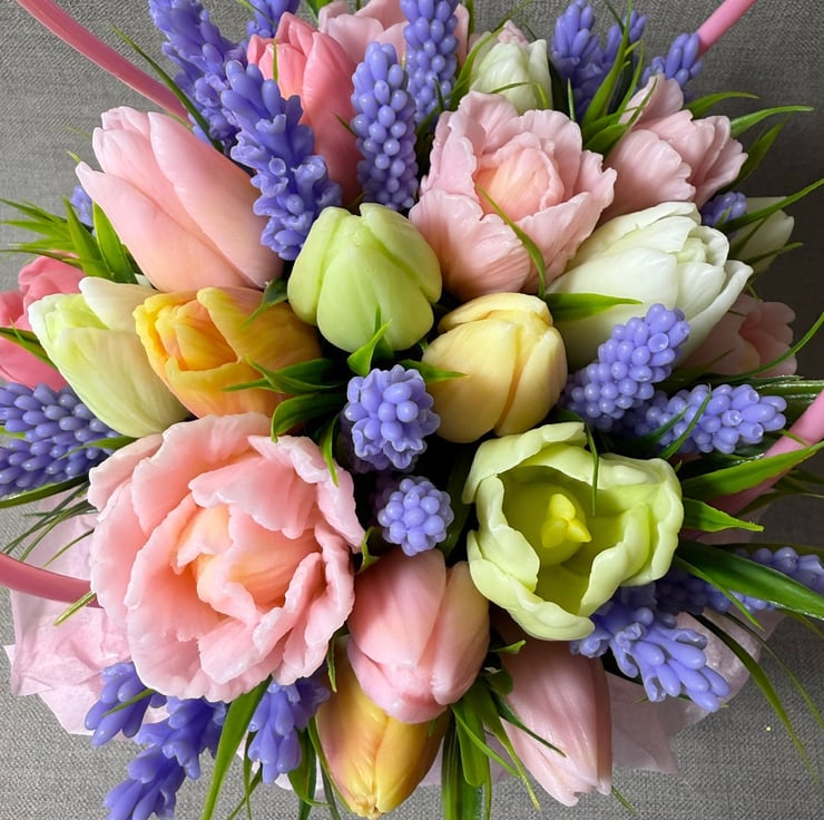 Delight in Spring: Large Handmade Soap Bouquet of Tulips with Lavender
