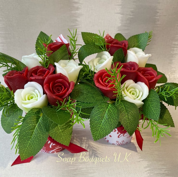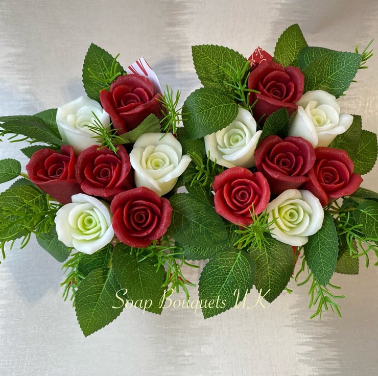 Captivating Red&White Roses Soap Bouquet - Perfect for Christmas Gifting