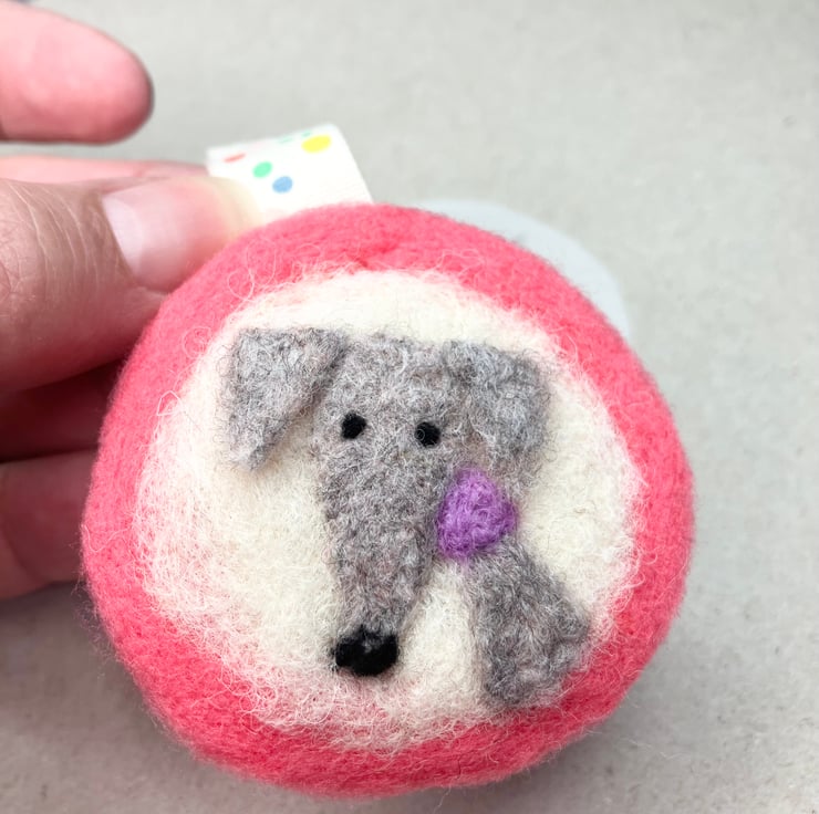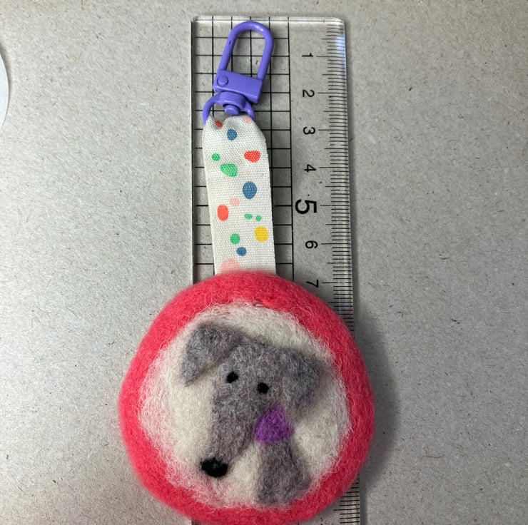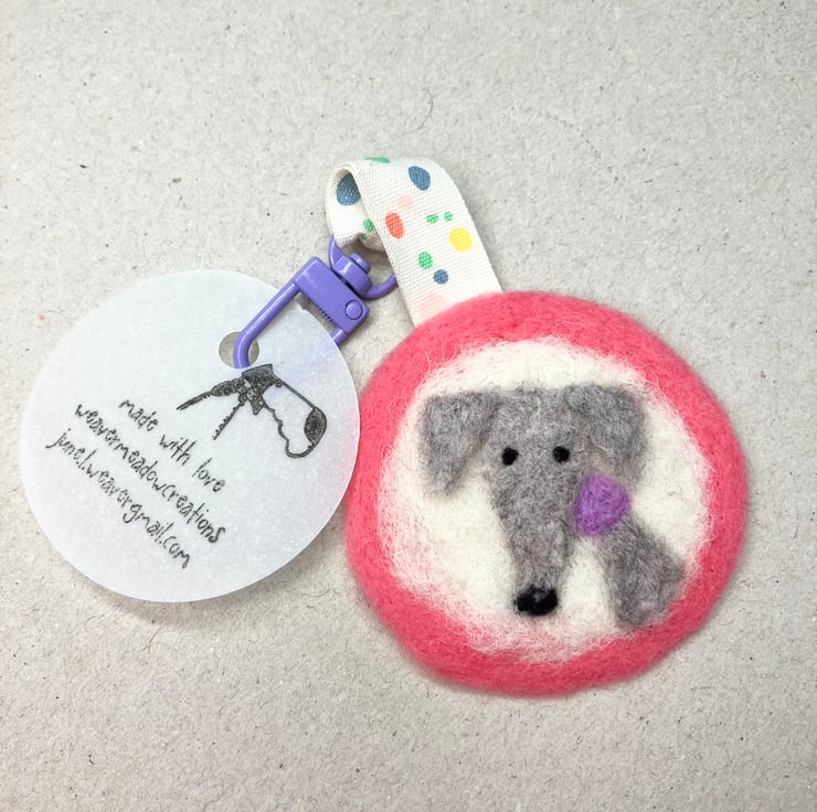 Needle Felted 6cm disks of wool dog portraits with coordinating collar & clip.Not just for keeping you keys easy to find but so helpful with zips ....
