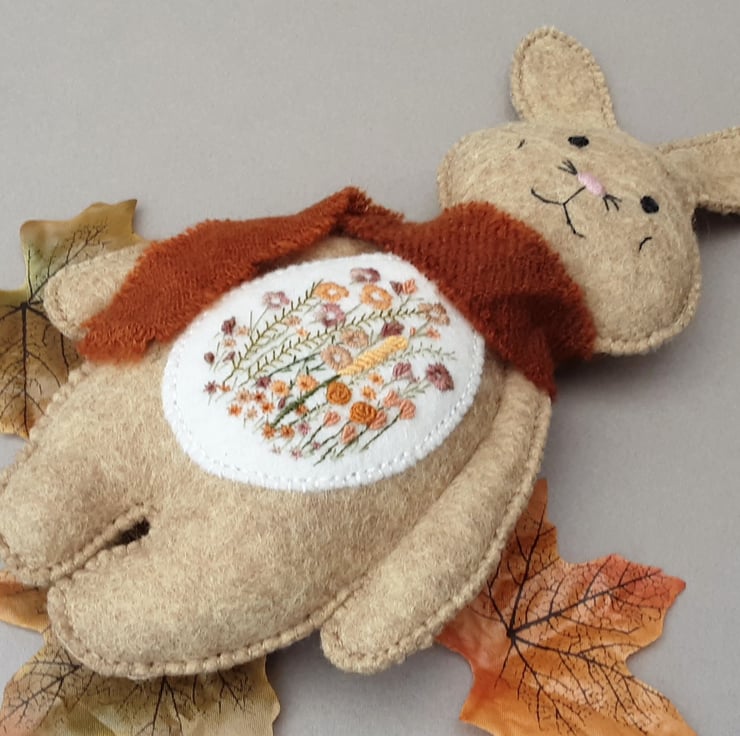 Woodland Bunny, a hand sewn and embroidered rabbit, keepsake gift designed by Bearlescent